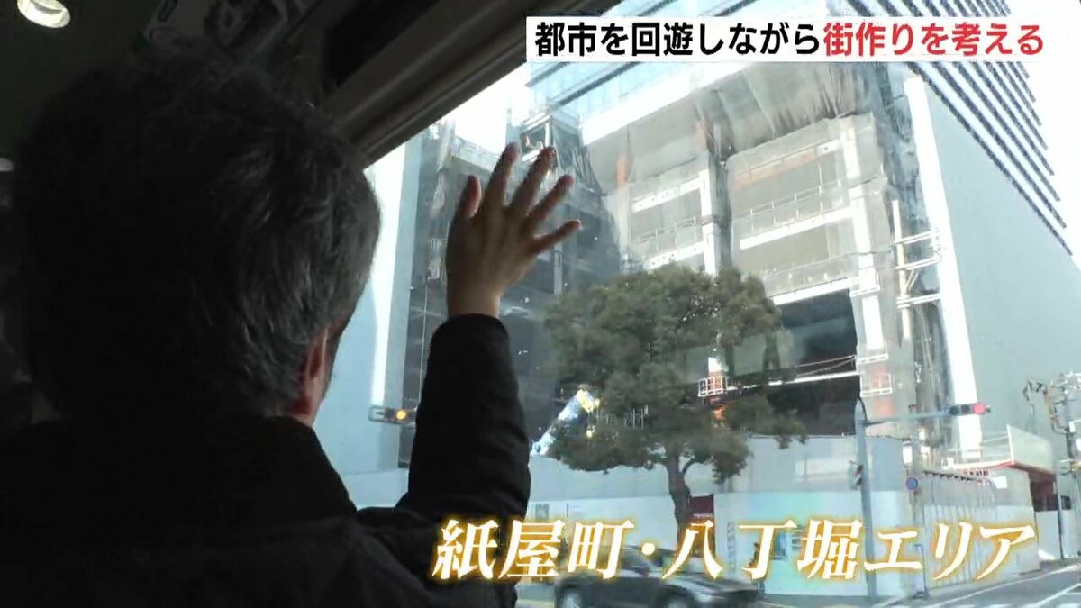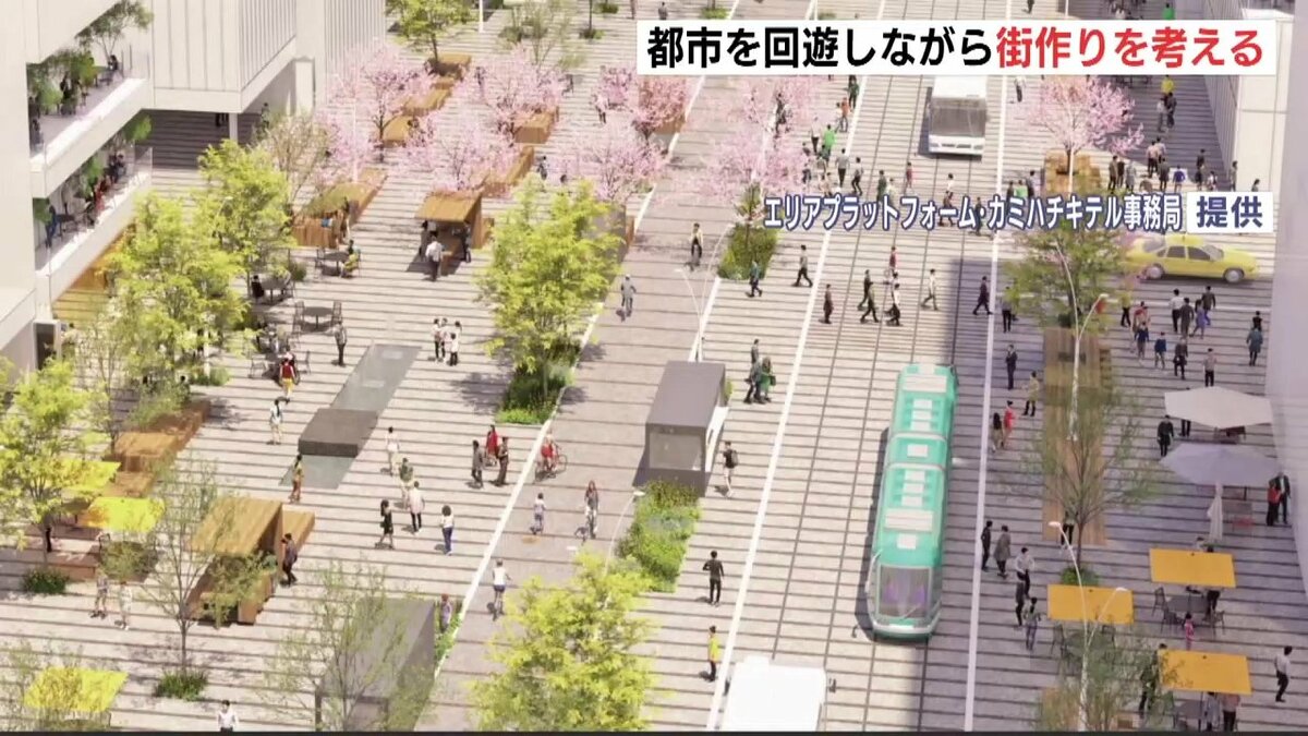 その後、参加者は路面電車に乗って、再開発が進む紙屋町・八丁堀エリアを視察しました。そして、これまで実施してきた社会実験についても紹介し、街づくりについて意見を交わしていました。