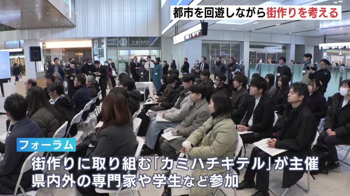 このフォーラムは、街作りに取り組む「カミハチキテル」が主催しました。県内外の専門家や学生などの参加者はまず、リニューアルされたJR広島駅に集まりました。
