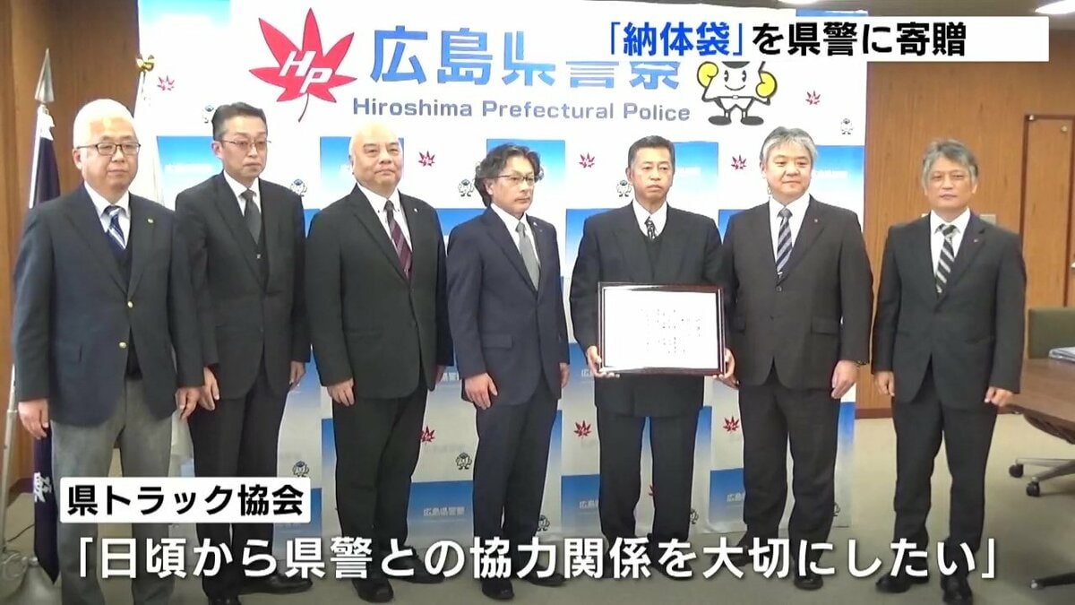 広島県トラック協会は、災害が起きたときなどに犠牲者を納める「納体袋」を、県警に寄贈しました。