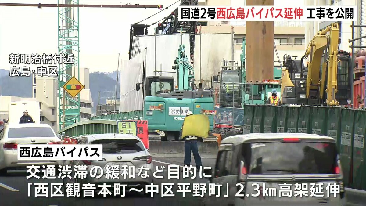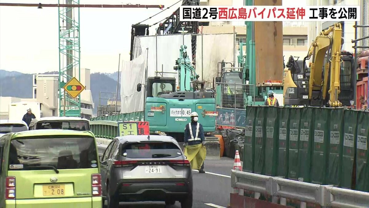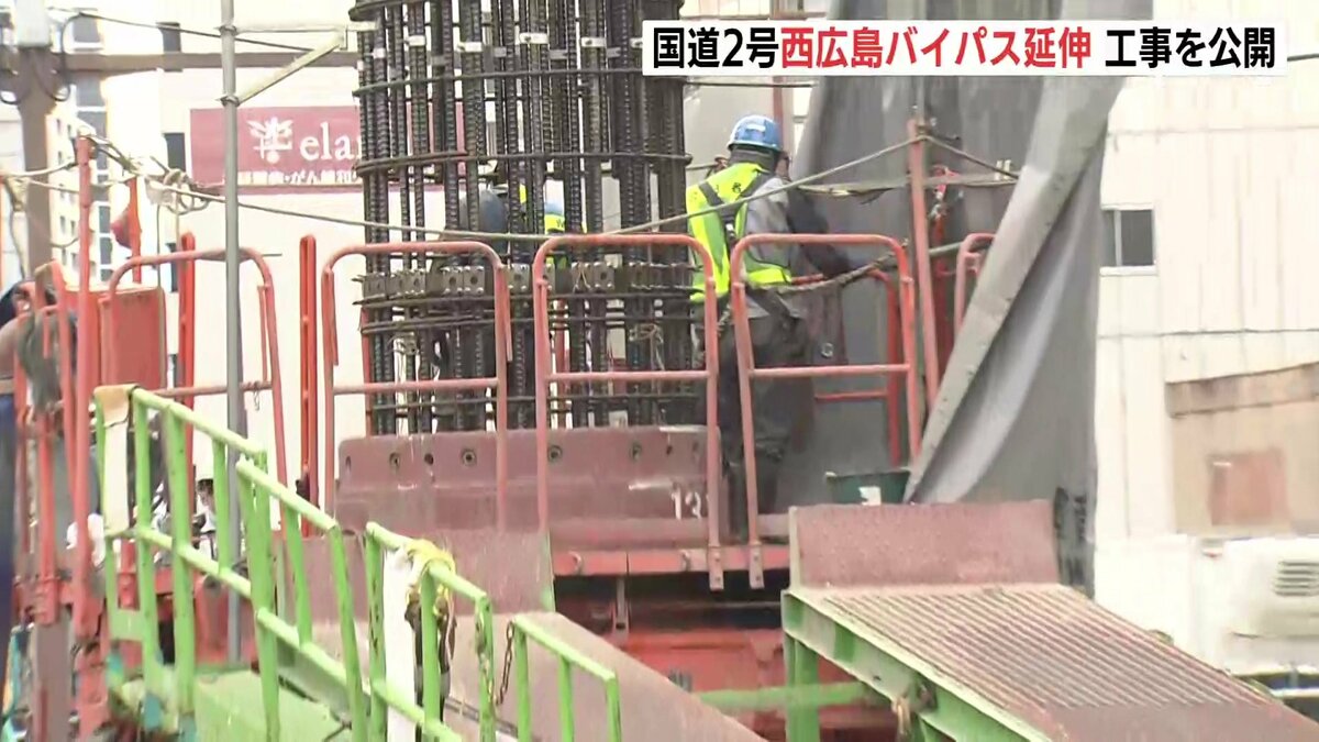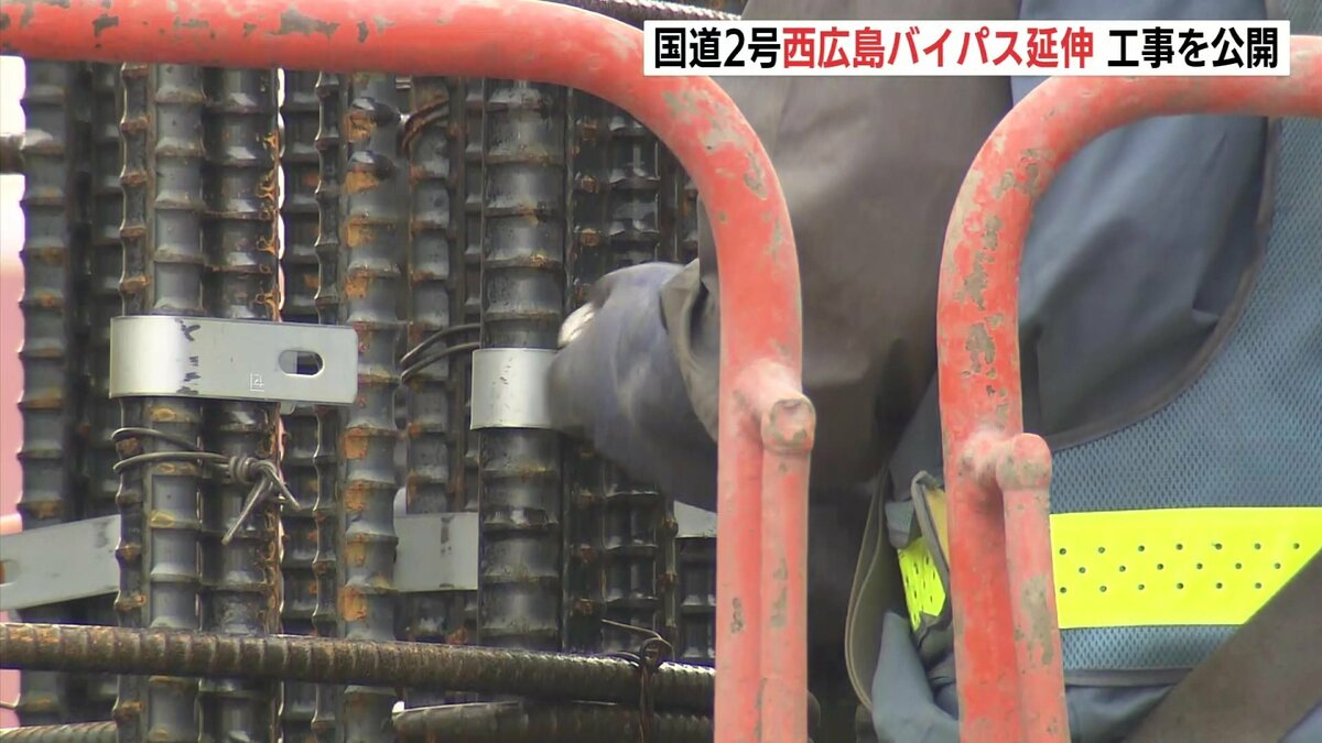広島市中心部への延伸工事が進む国道2号・西広島バイパスで26日、一部区間の工事が報道陣に公開されました。