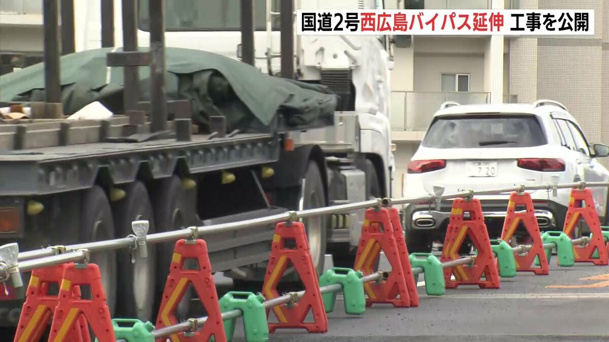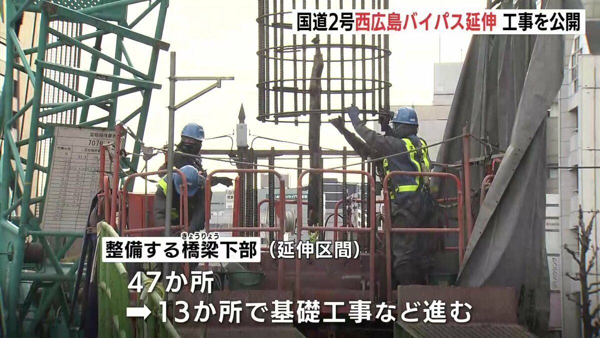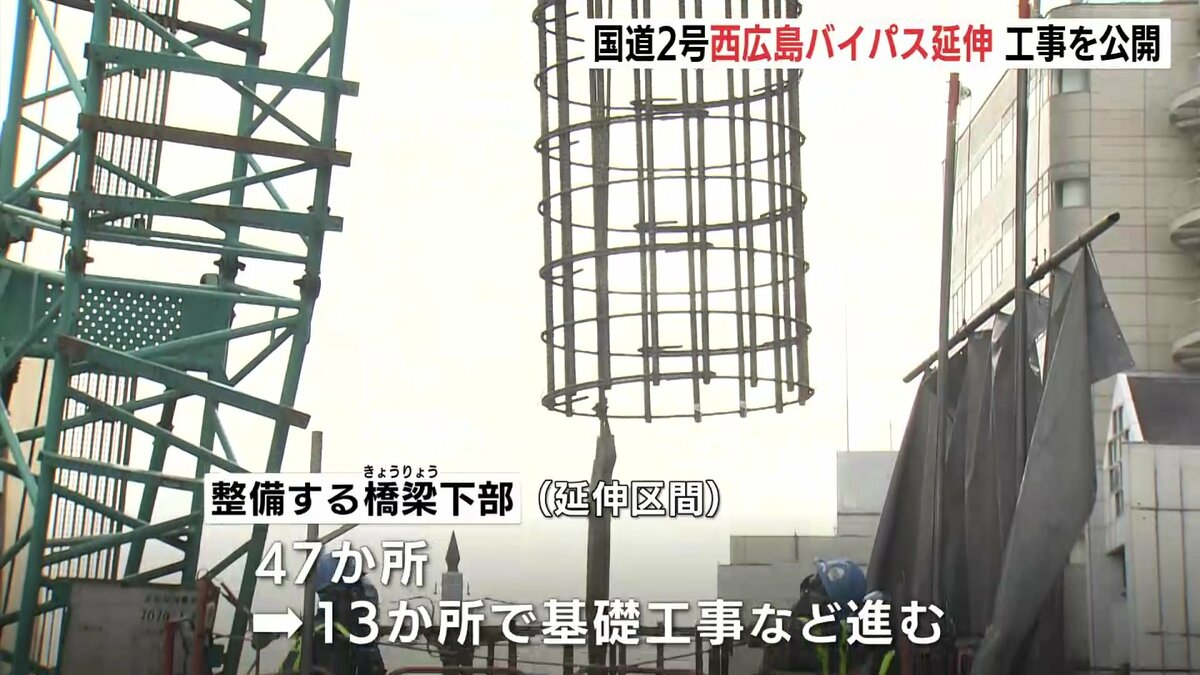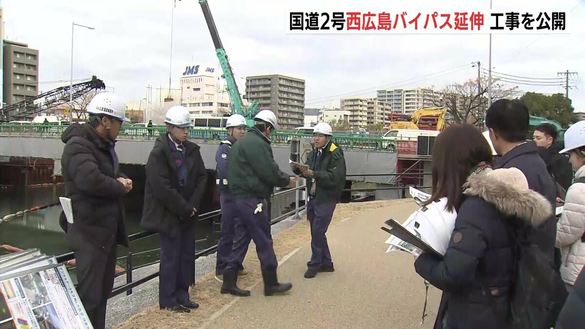 広島市中心部への延伸工事が進む国道2号・西広島バイパスで26日、一部区間の工事が報道陣に公開されました。
