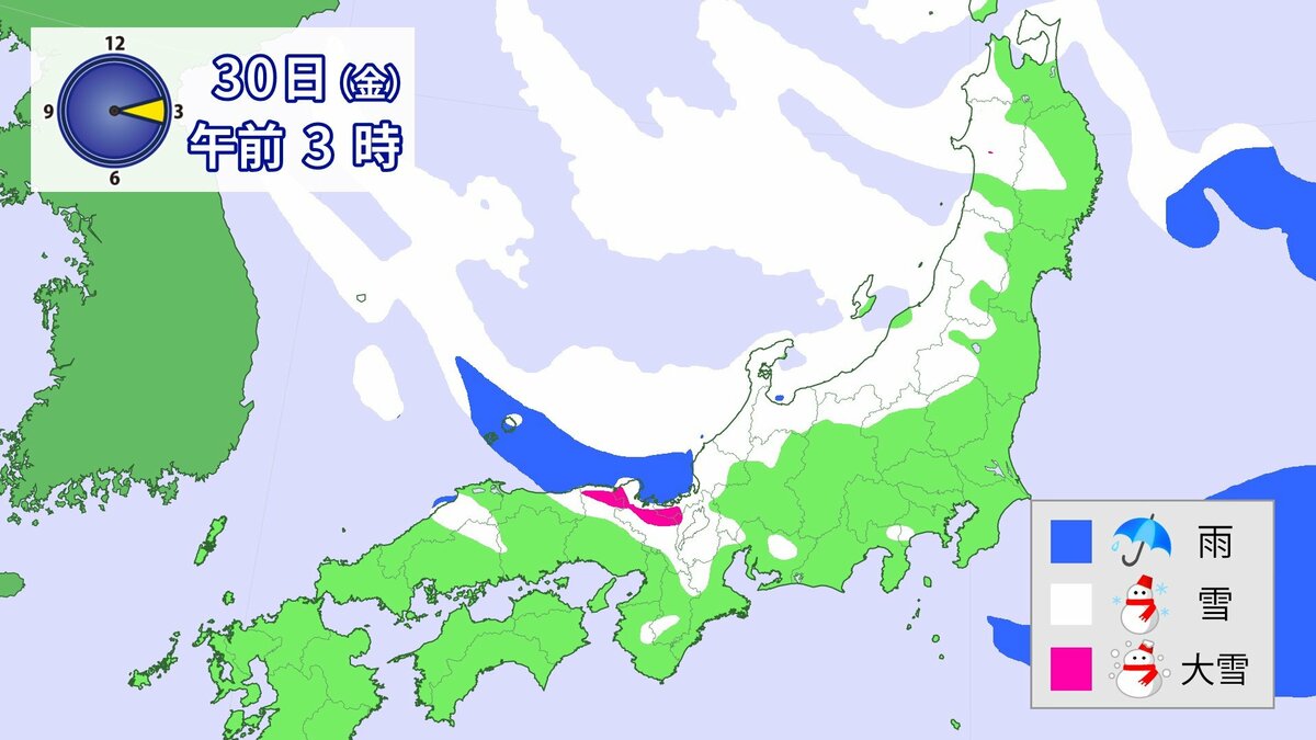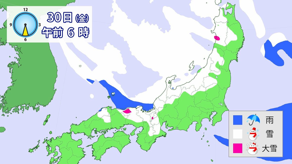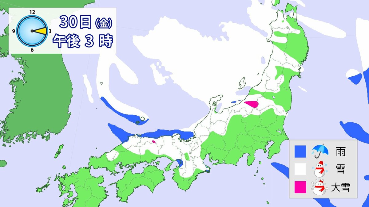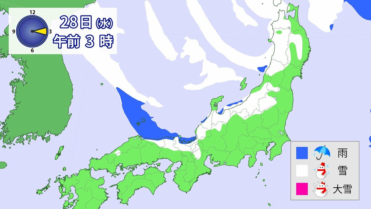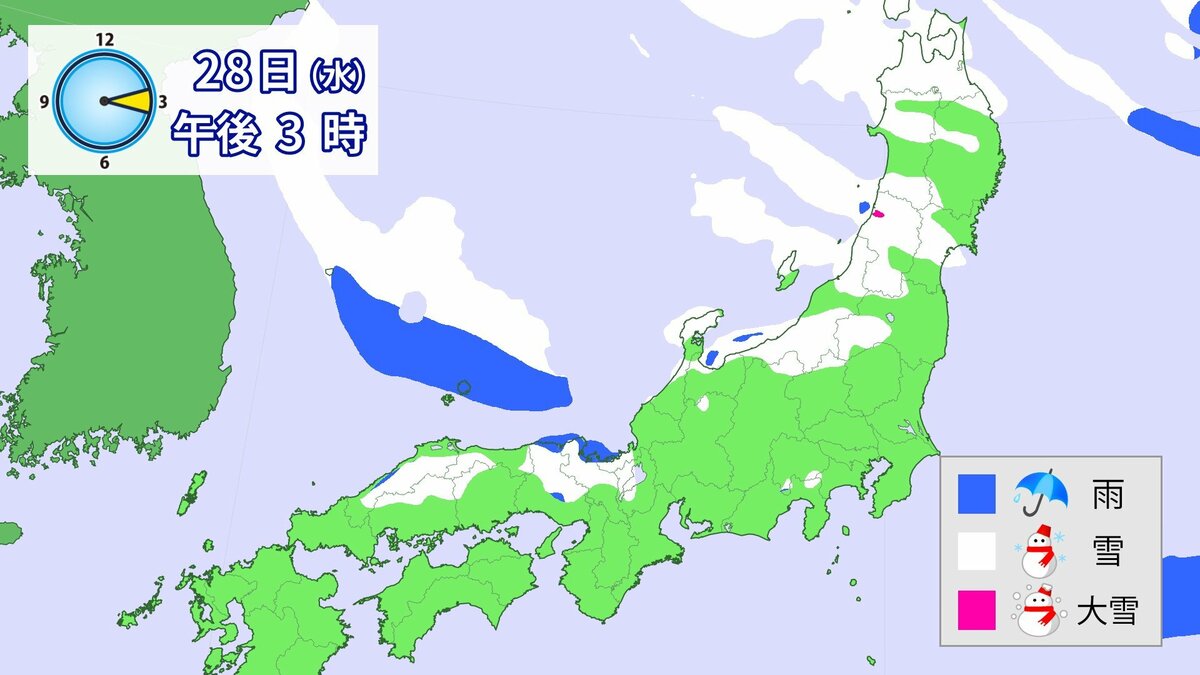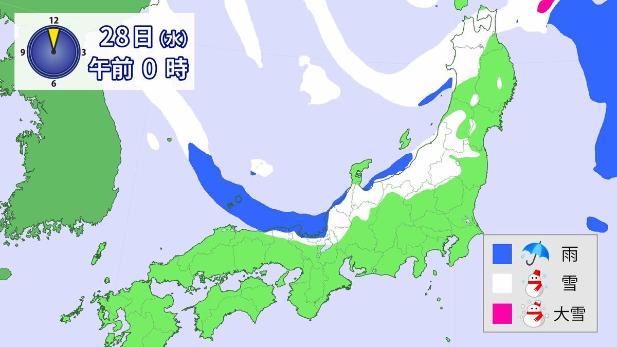 全国各地で大雪をもたらした、長い居座り寒波がようやくおさまり、27日(火)は上空の寒気が比較的緩んでいます。ただ、28日(水)の午後からは次第に寒気が強まり、29日(木)以降は、日本海側で再び大雪となる可能性があります。上空1500m付近の寒気を見ると、29日(木)は平地で雪を降らせる目安の-6℃以下の寒気が、日本の南岸まですっぽり覆っています。