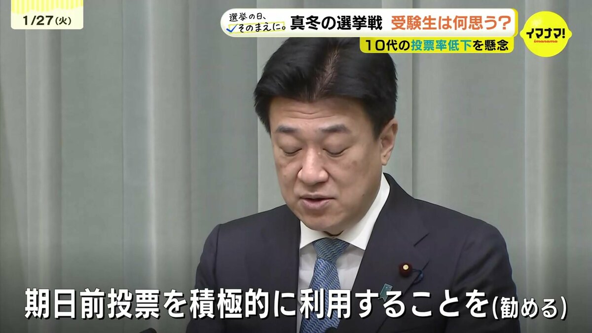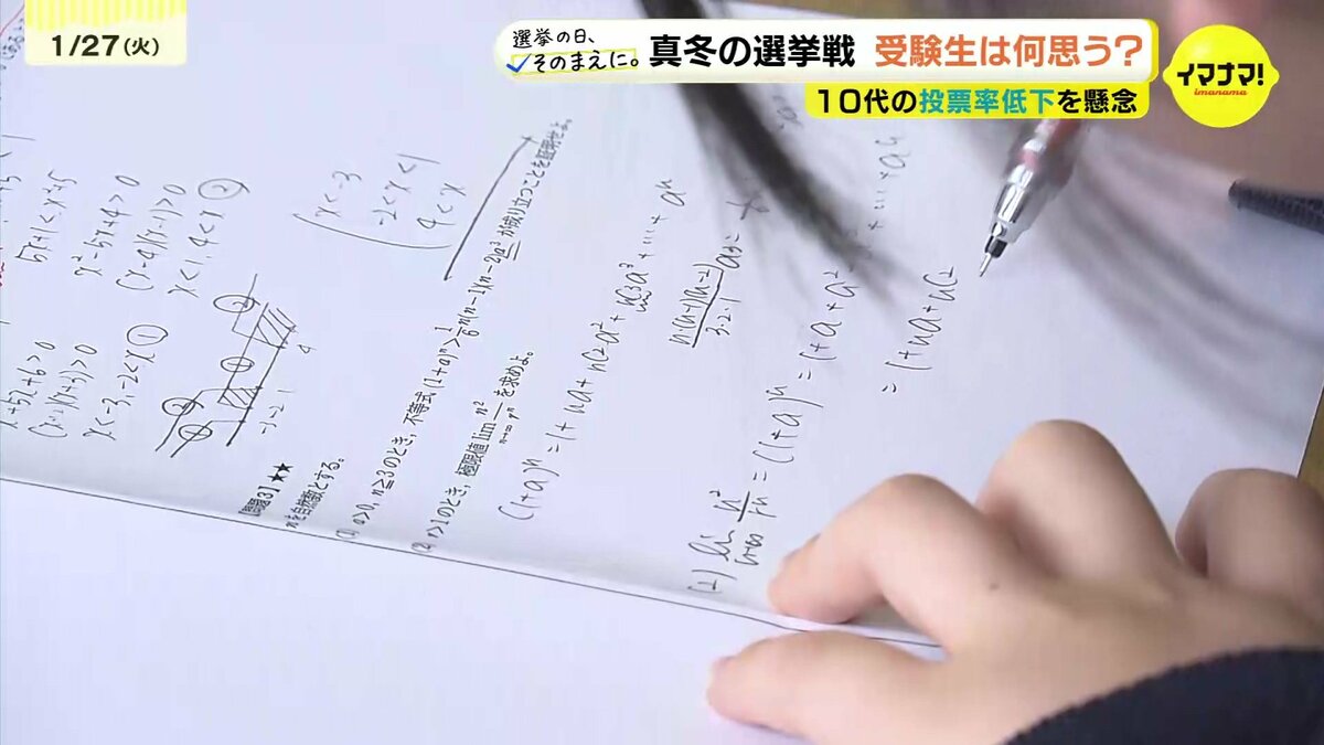 きょう公示、来月8日投開票の衆議院選挙。真冬の選挙戦は36年ぶりということで、投票率への影響が気になります。そして今は、受験シーズン真っ只中でもあります。18歳が投票できるようになって初めての2月投開票の衆議院選挙です。10代の投票率低下が懸念される中、大学入試を控える受験生に話を聞きました。