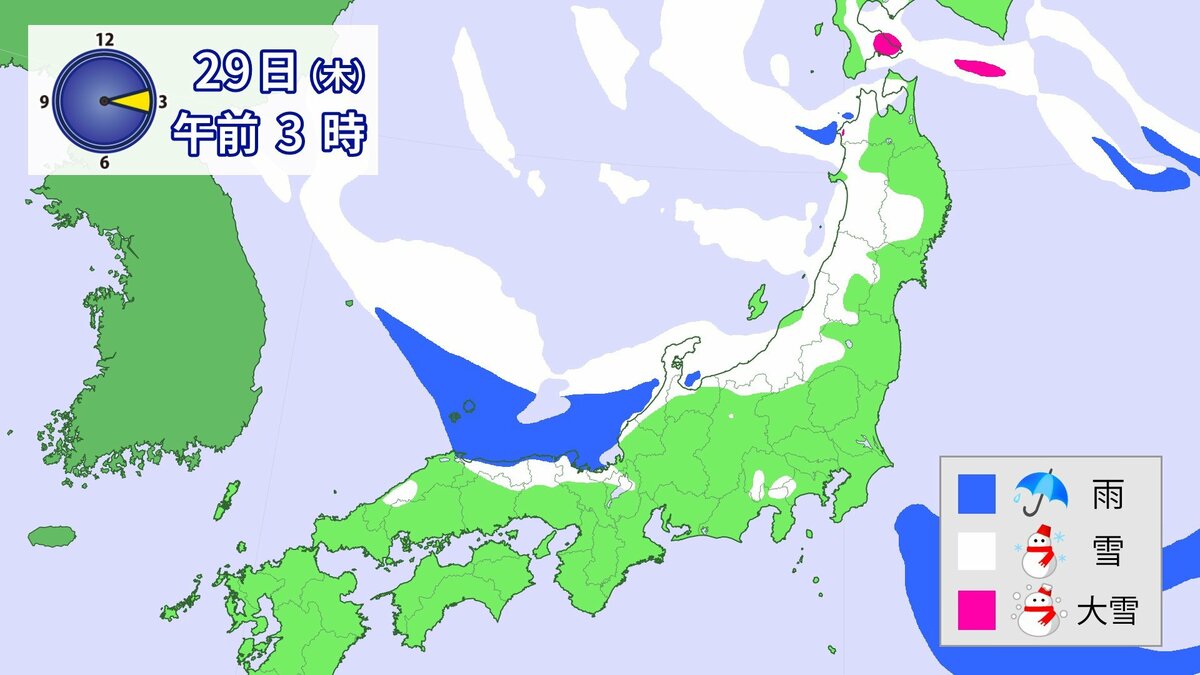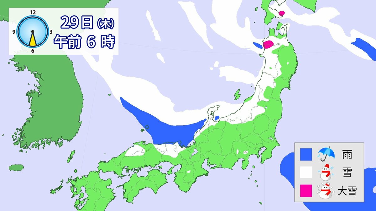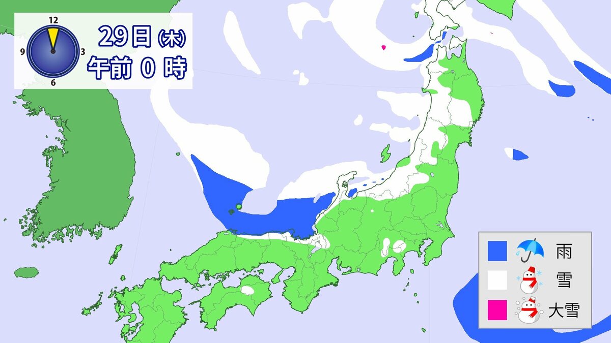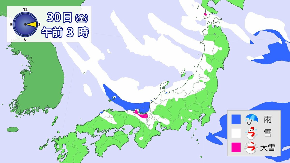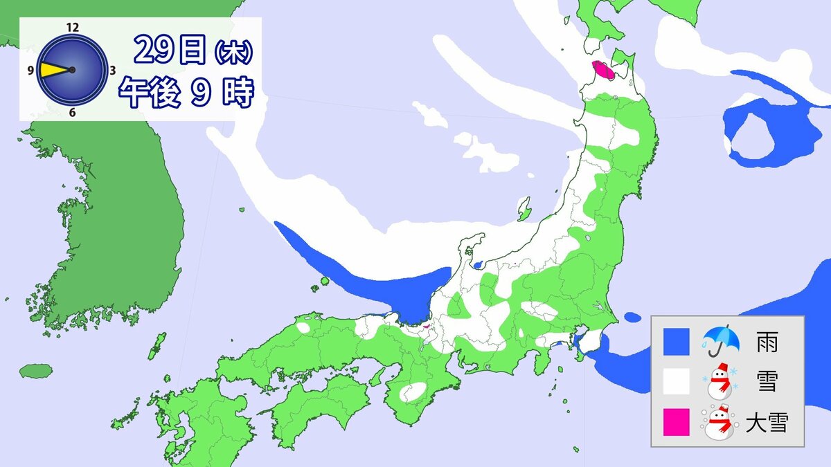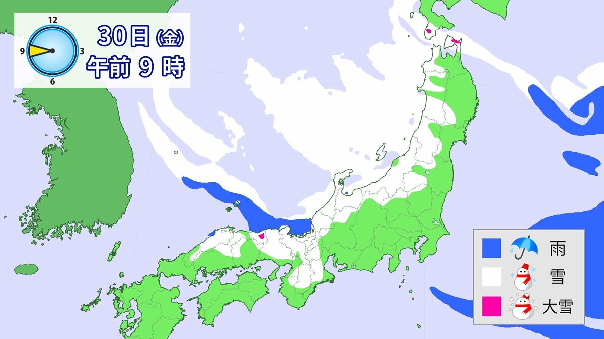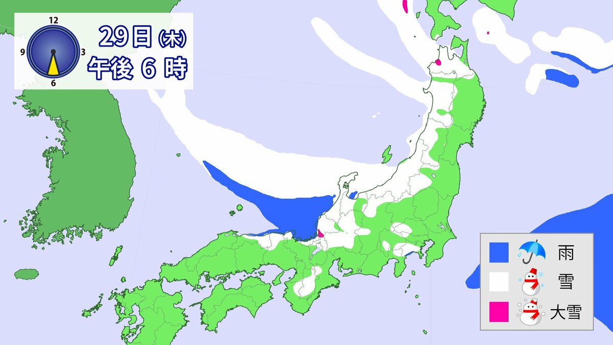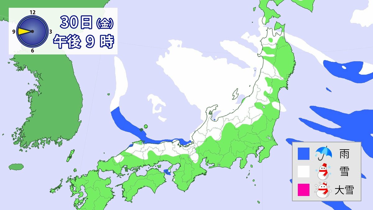 気象庁によりますと、日本付近は29日から30日頃にかけて強い冬型の気圧配置となり、北陸地方の上空約5500mには-36℃以下の強い寒気が流れ込むでしょう。