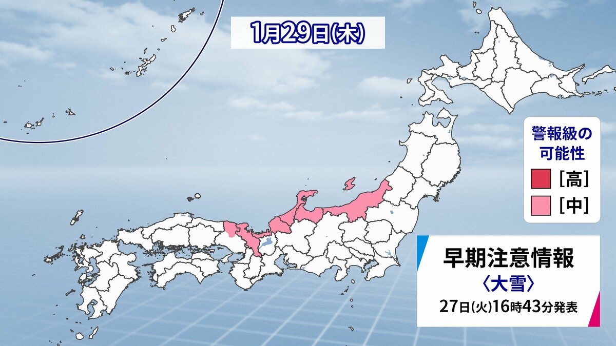 気象庁は、北陸・近畿・山陰では「警報級の大雪」の可能性があると発表しました。