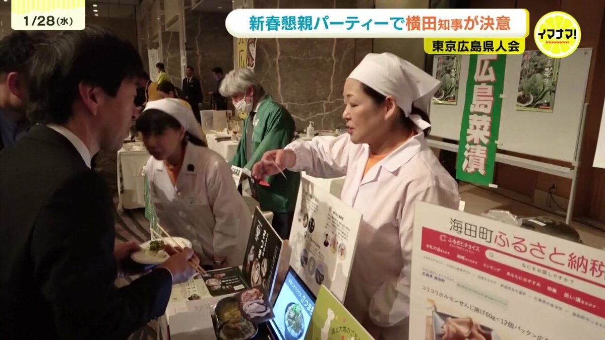 東京広島県人会の新春懇親パーティーが27日、都内で開かれ、横田知事が「多くの人を引きつけられる広島にしていきたい」と決意を語りました。