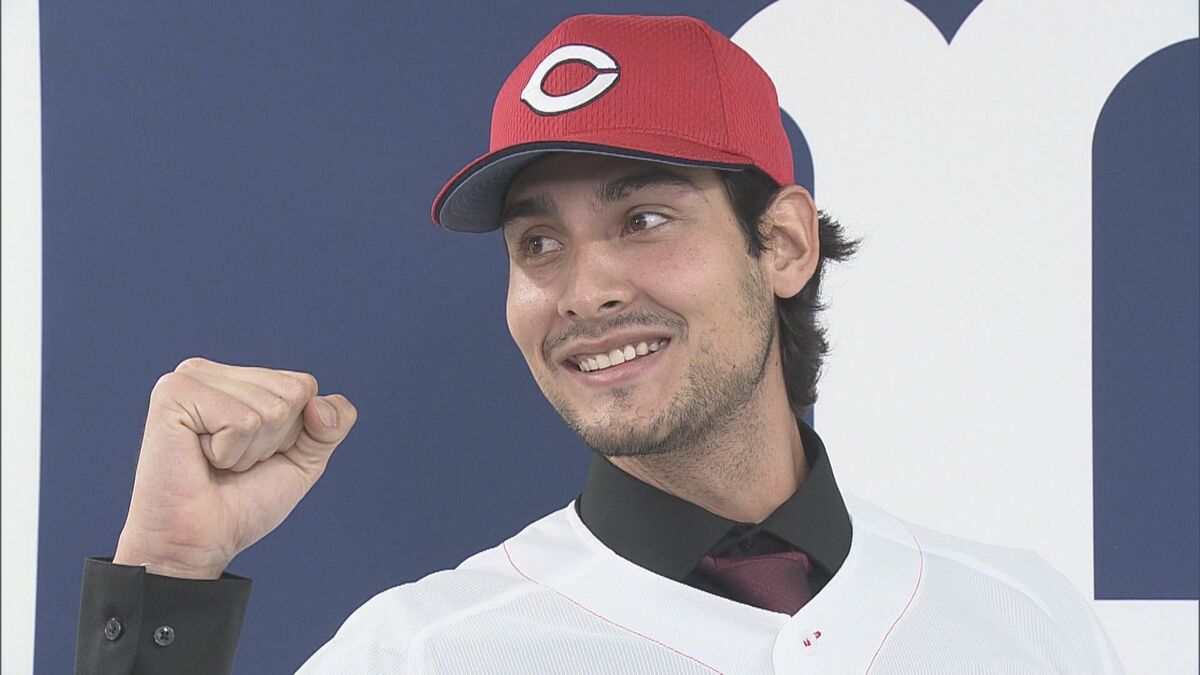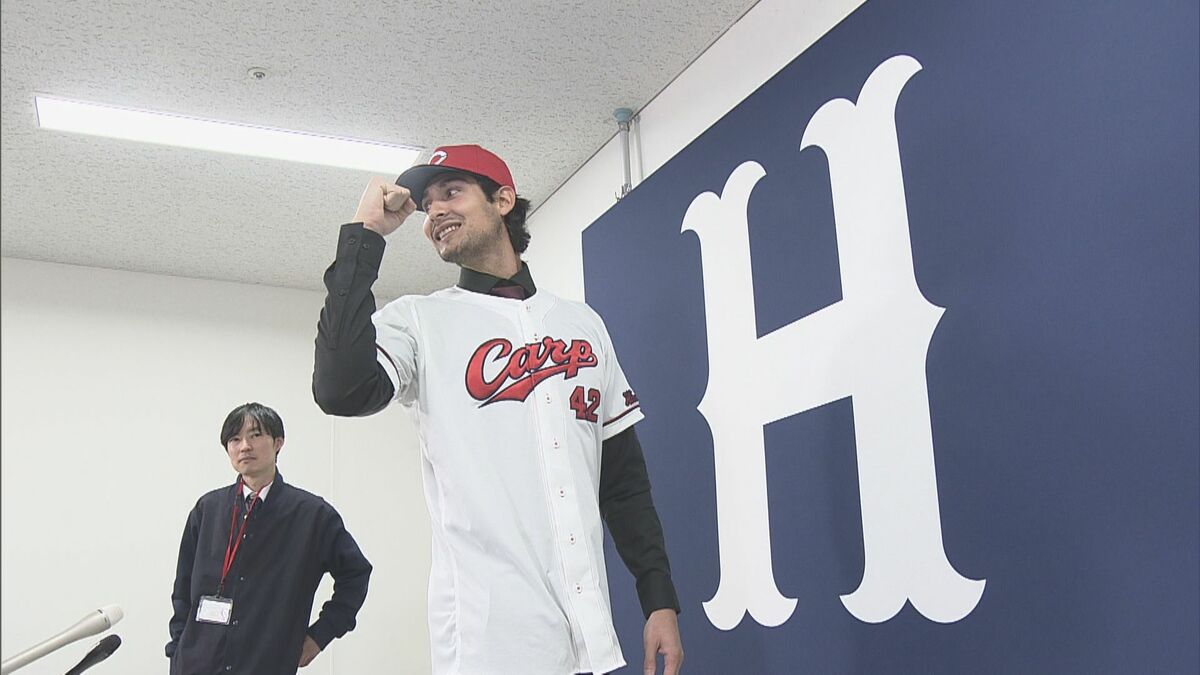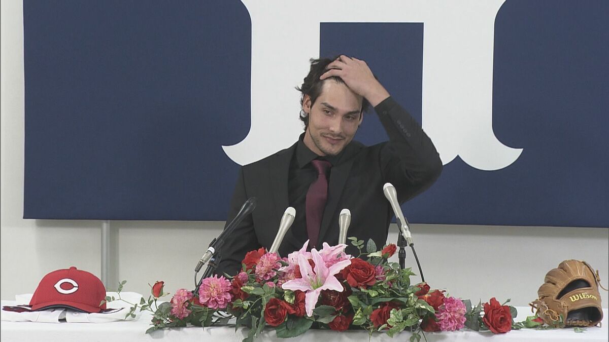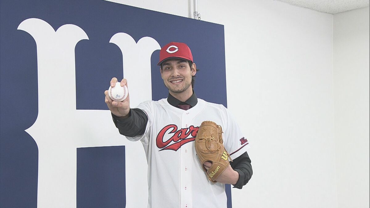 広島カープに今シーズンから仲間入りする新外国人投手の入団会見が開かれました。