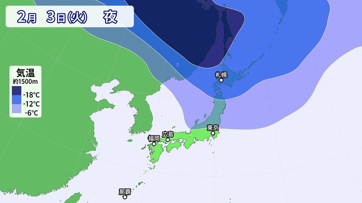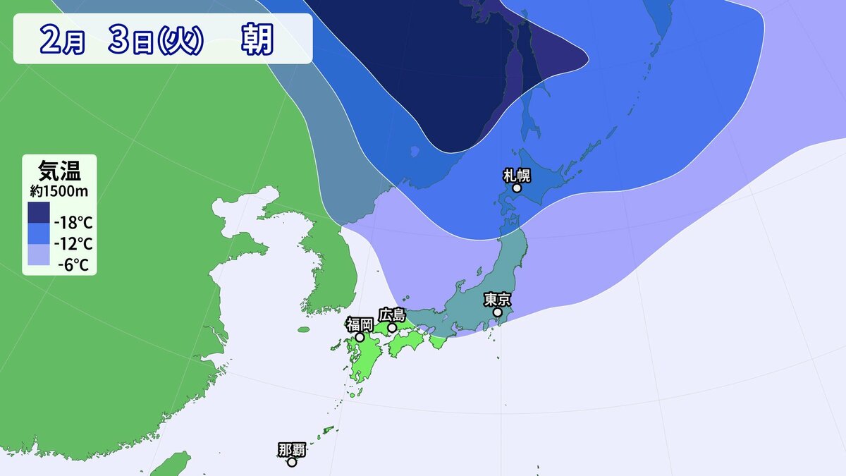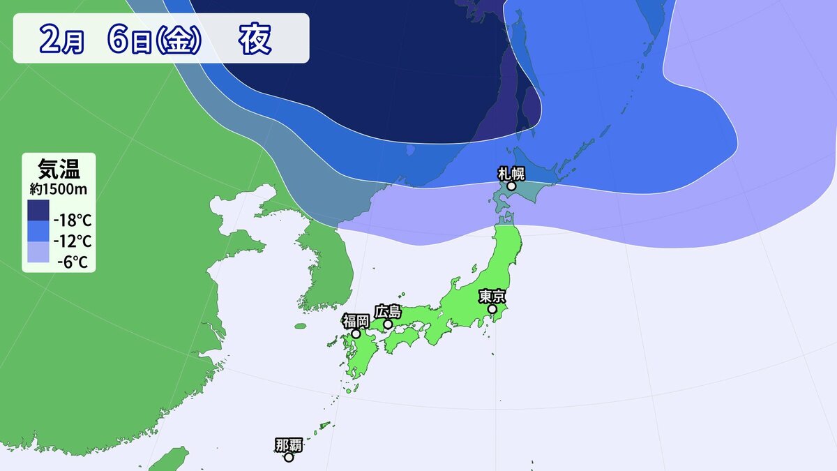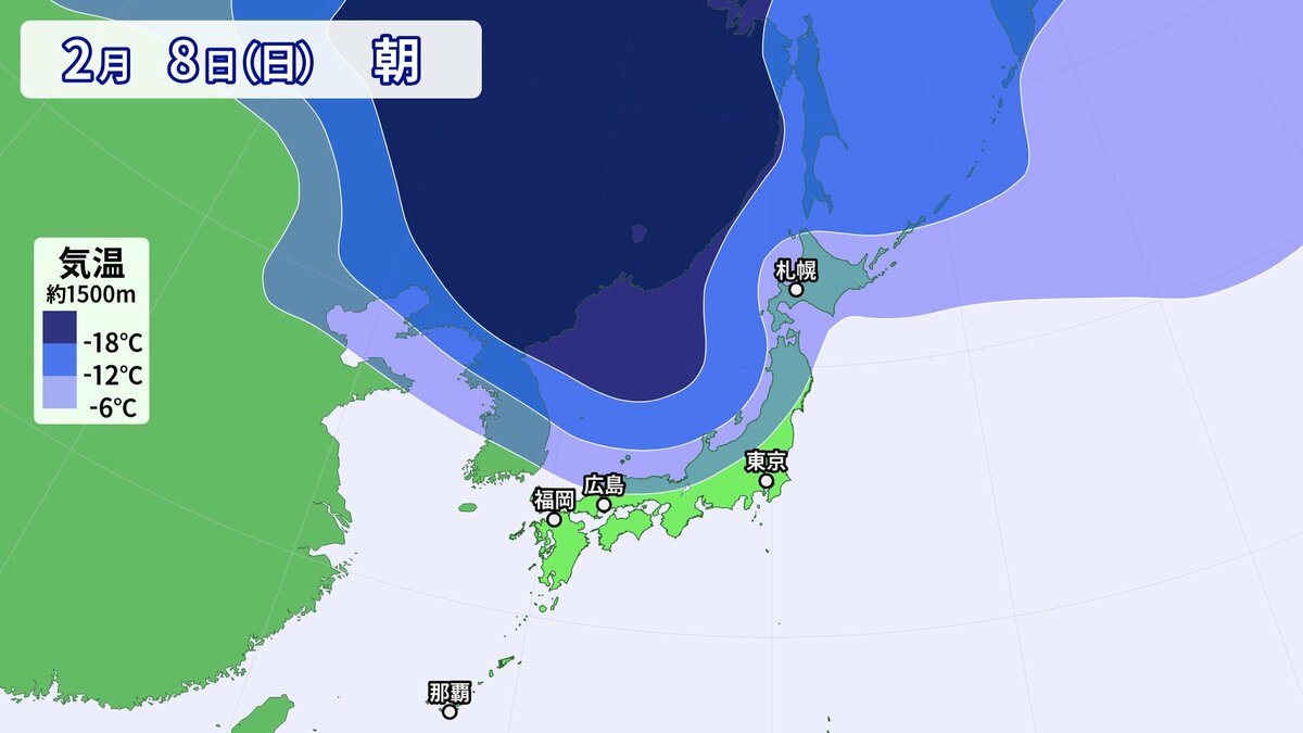ただ、今のところ来週末に再び強い寒気が流れ込む見込みで、衆議院選挙投票日の2月8日(日)には、大雪の目安の寒気が本州付近に流れ込み、近畿地方から東日本・北日本の広い範囲まで南下する予想です。