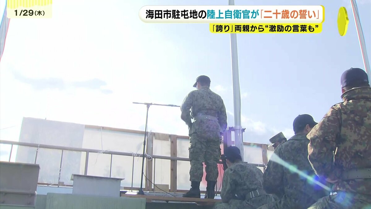 2025年度に二十歳を迎える陸上自衛官たちが、建物の屋上から誓いを叫びました。