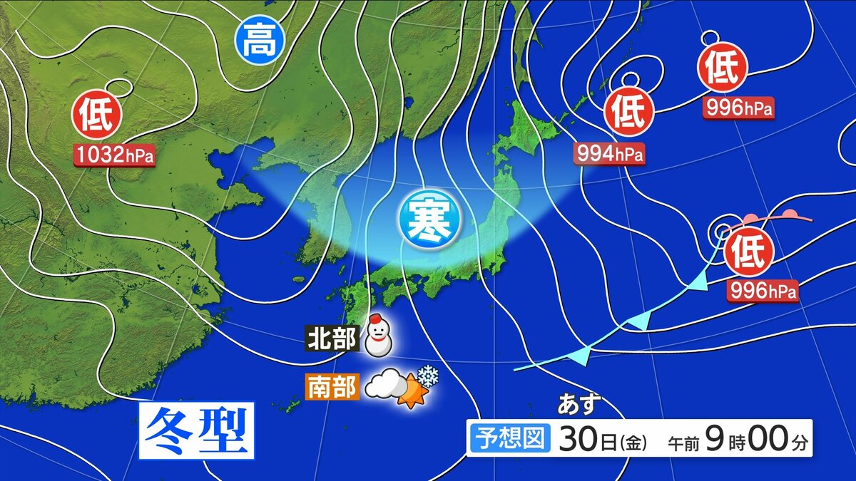 30日(金)強い寒気ピーク 北部では断続的に雪 南部で降るところも 風が冷たい一日