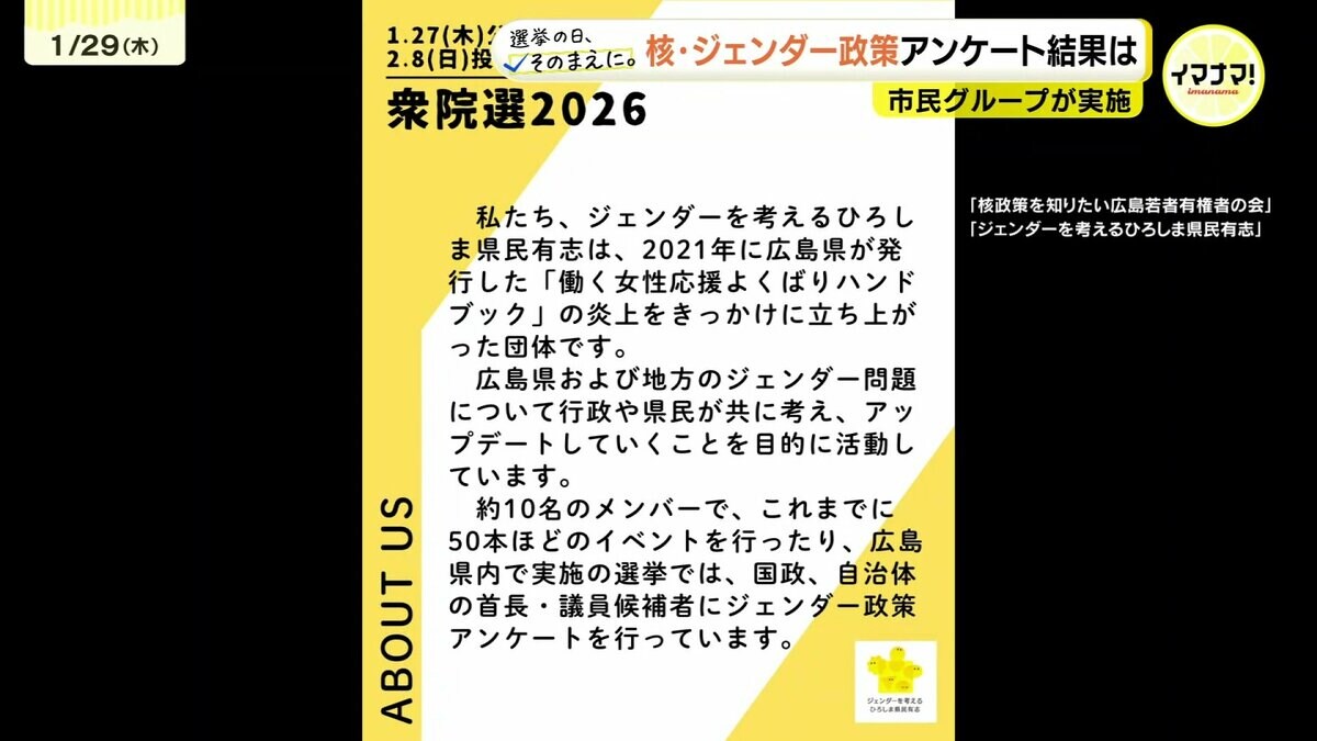 「核政策を知りたい広島若者有権者の会」と、「ジェンダーを考えるひろしま県民有志」は、先週、衆院選に立候補を表明した広島選挙区の候補者29人にメールでアンケートを送り、17人から回答がありました。