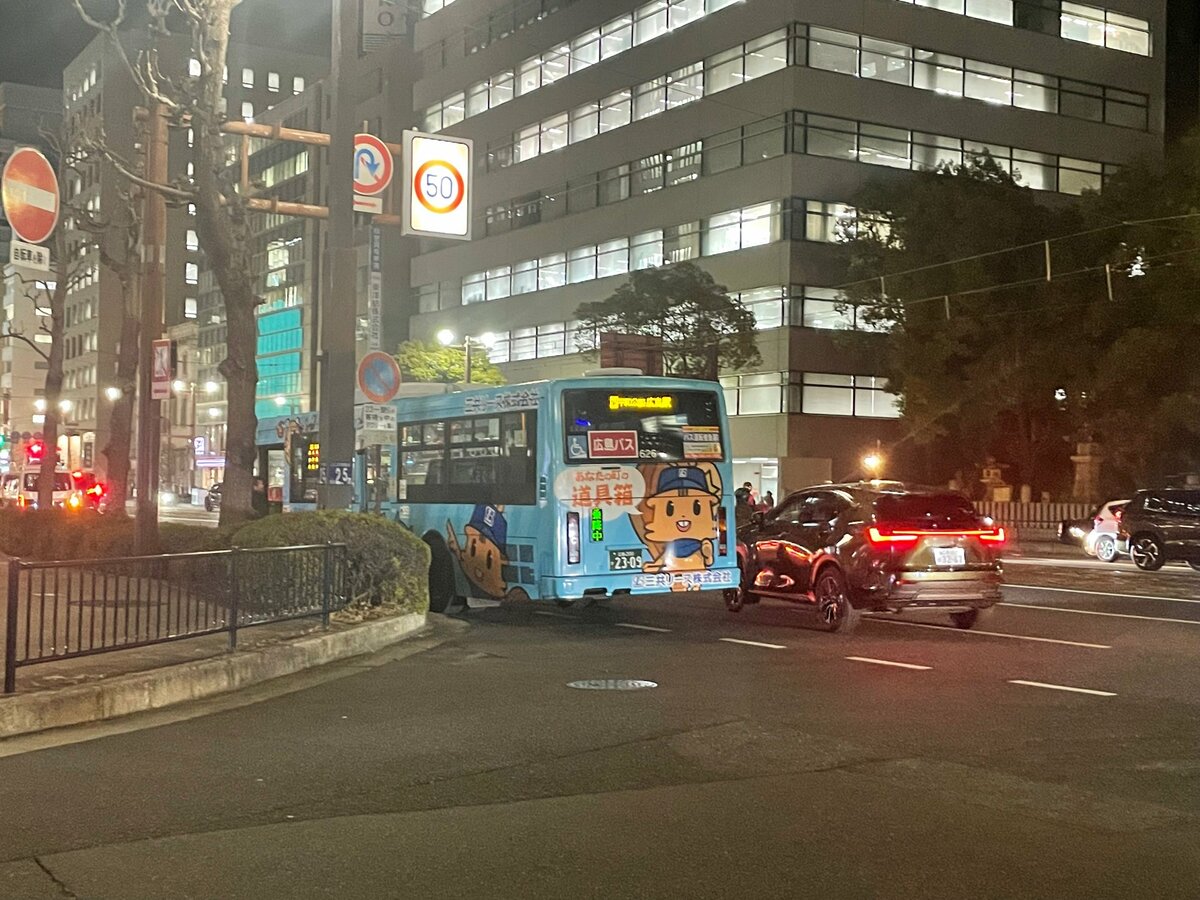 広島市中区大手町の平和大通りをバスが左折しようとした際、バイクと衝突しました。