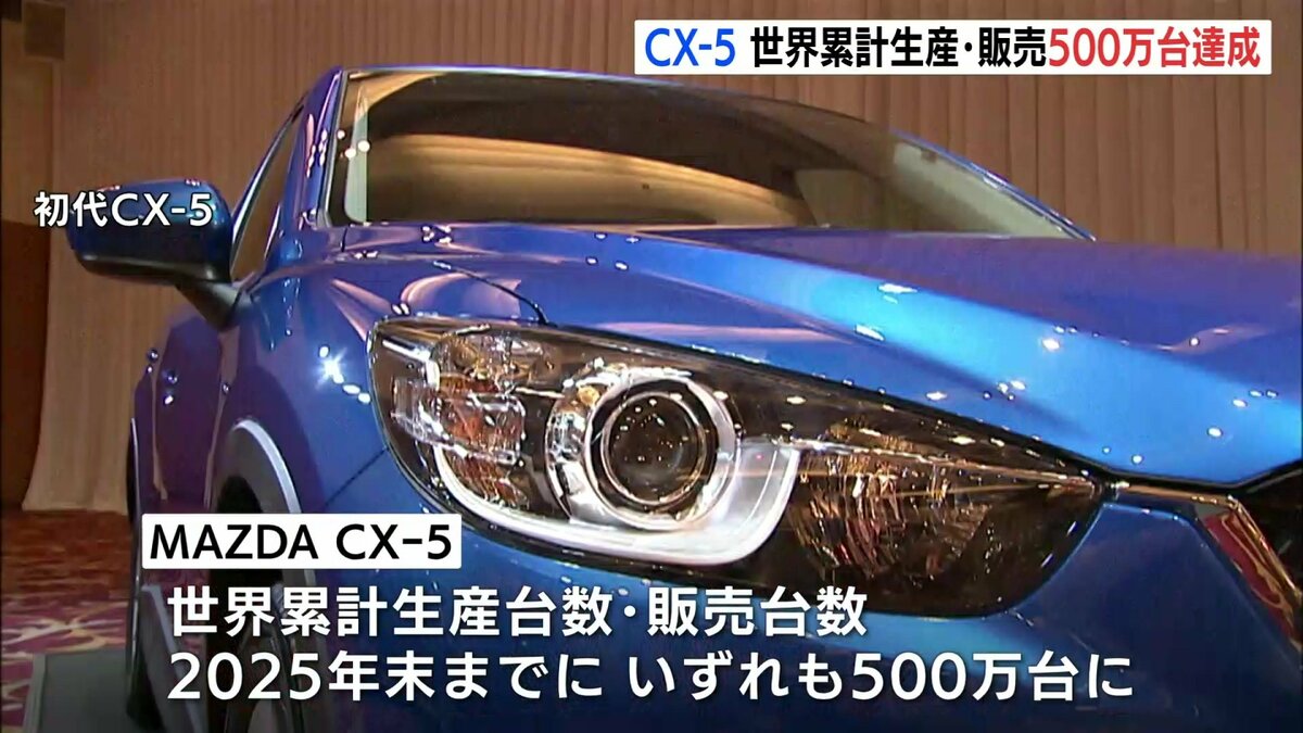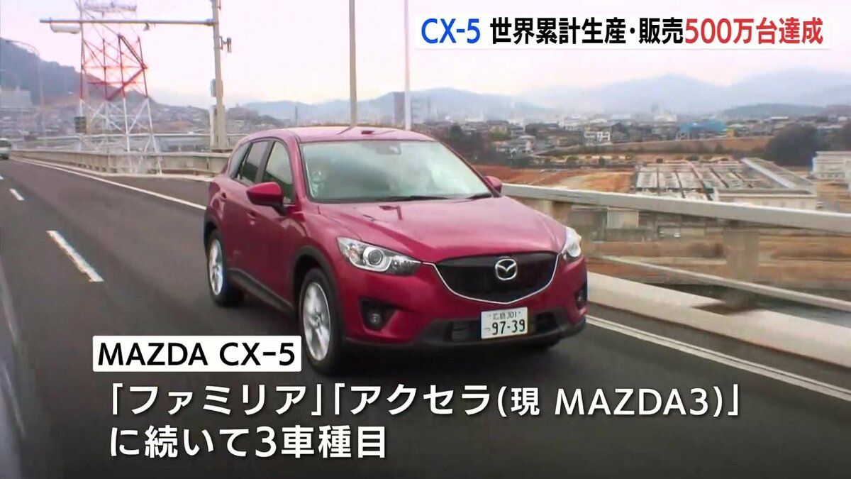 マツダによりますと「CX-5」の世界累計生産台数と販売台数は、2025年末までにいずれも500万台に達しました。生産・販売の双方で、500万台を突破したのは「ファミリア」「アクセラ(現:MAZDA3)」に続いて3車種目です。