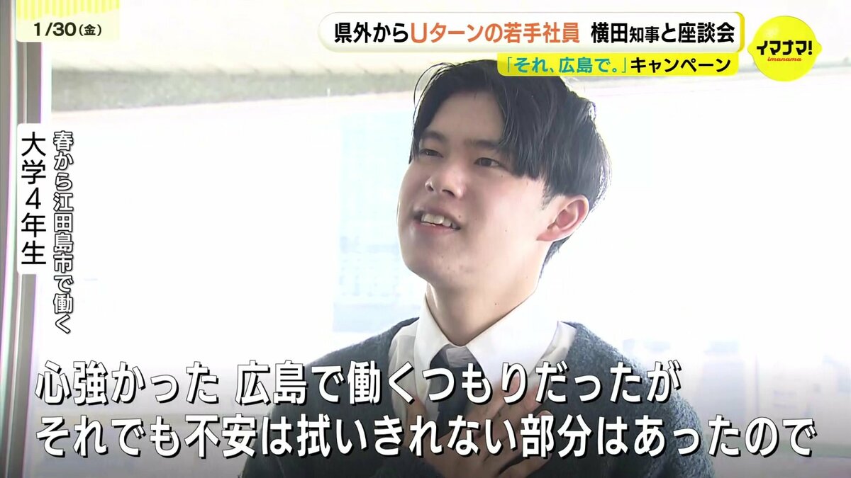 座談会は県が若者に定住を促す「それ、広島で。」キャンペーンの一環で開かれたものです。