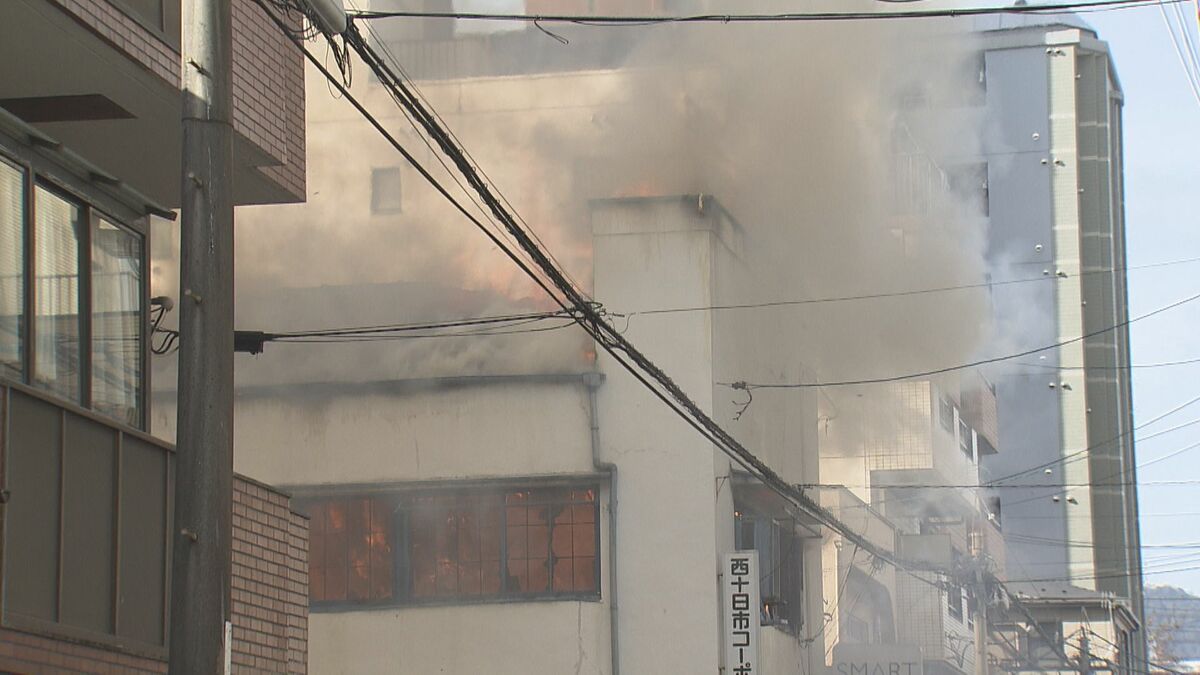 火事があったのは広島市中区西十日市町にある木造2階だてのアパートです。警察と消防によりますと、午前11時10分ごろ、「アパートの2階から炎が見える」と通報がありました。