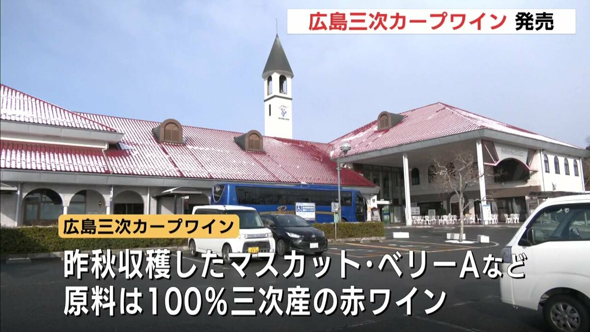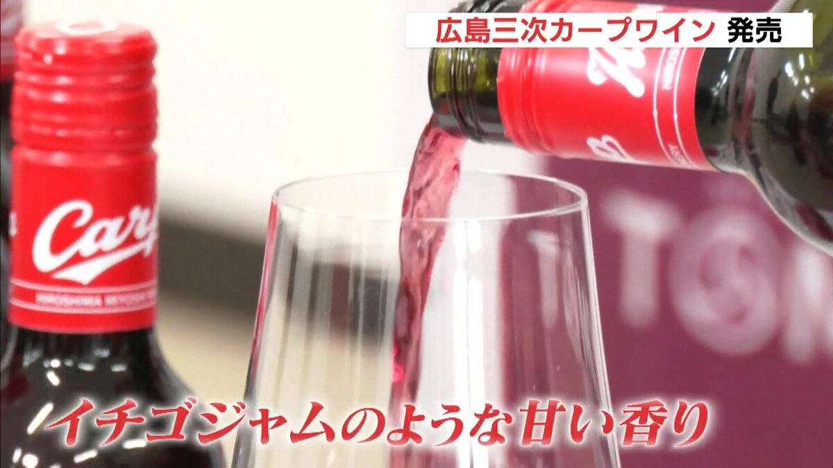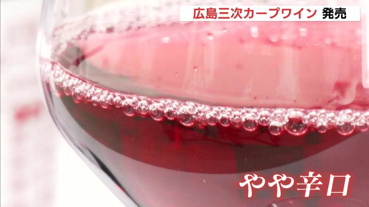 1日から日南キャンプに入ったカープを応援しようと、三次ワイナリーで発売されました。去年秋に地元で収穫したブドウを使った赤ワインです。イチゴジャムのような甘い香りが特徴で、味は「やや辛口」だということです。