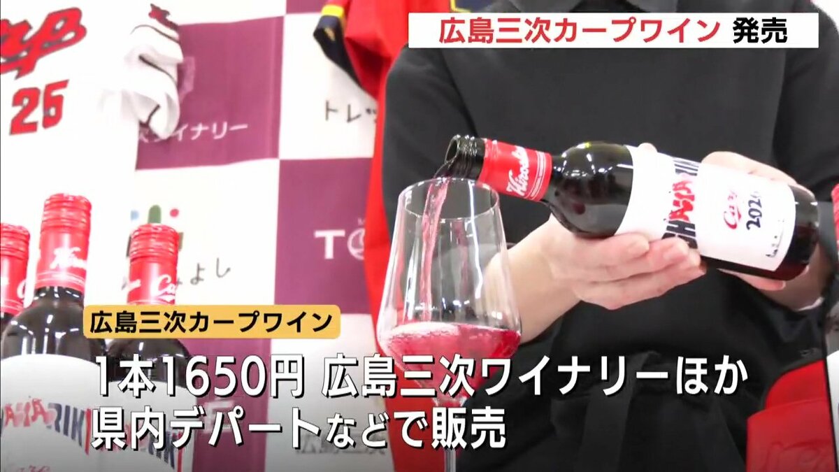 “カープ愛”がたっぷり詰まった「広島三次カープワイン」は1本・1650円。三次ワイナリーのほか広島県内のデパートなどで販売されるということです。