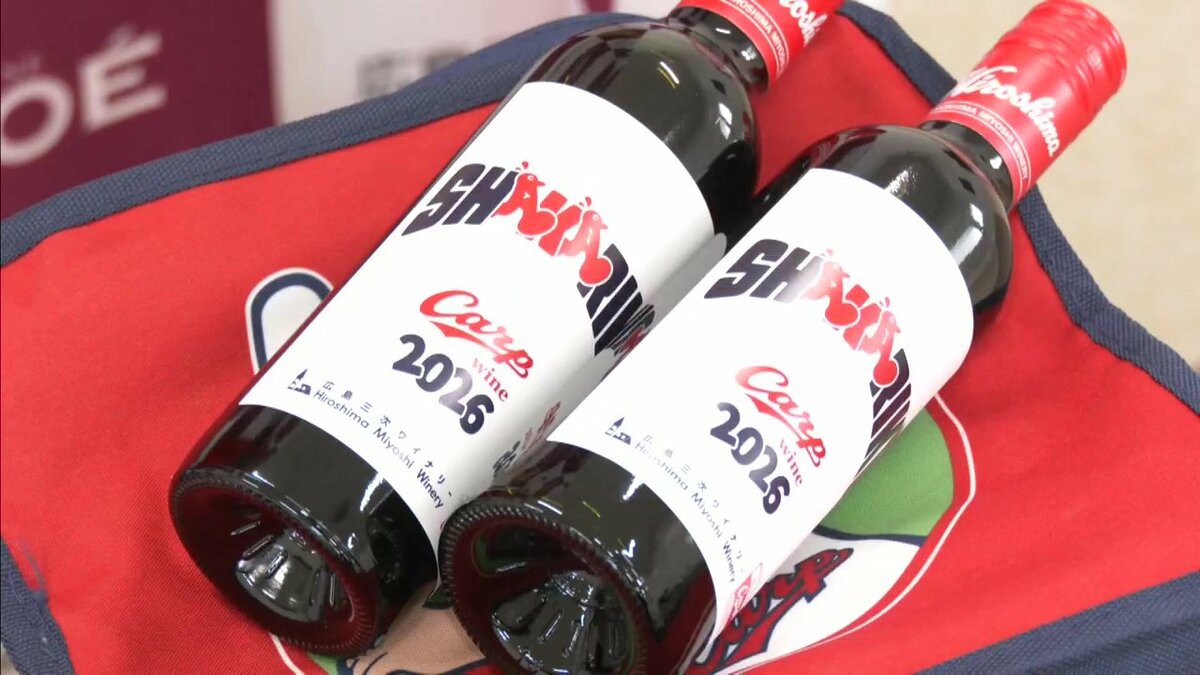 日南キャンプのスタートに合わせて、ラベルにもこだわった「カープワイン」が、1日から販売されています。