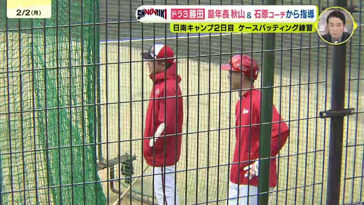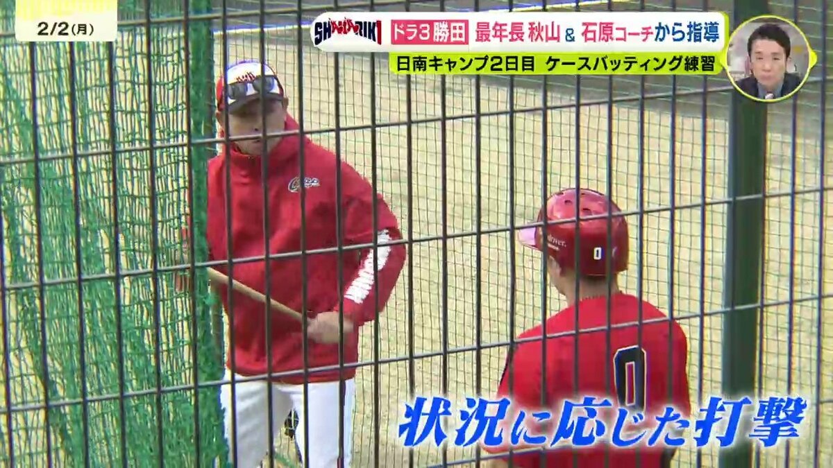 16歳上でチーム最年長・秋山翔吾選手と石原慶幸バッテリーコーチからアドバイスを受けながら、状況に応じたバッティングの難しさを感じているようでした。