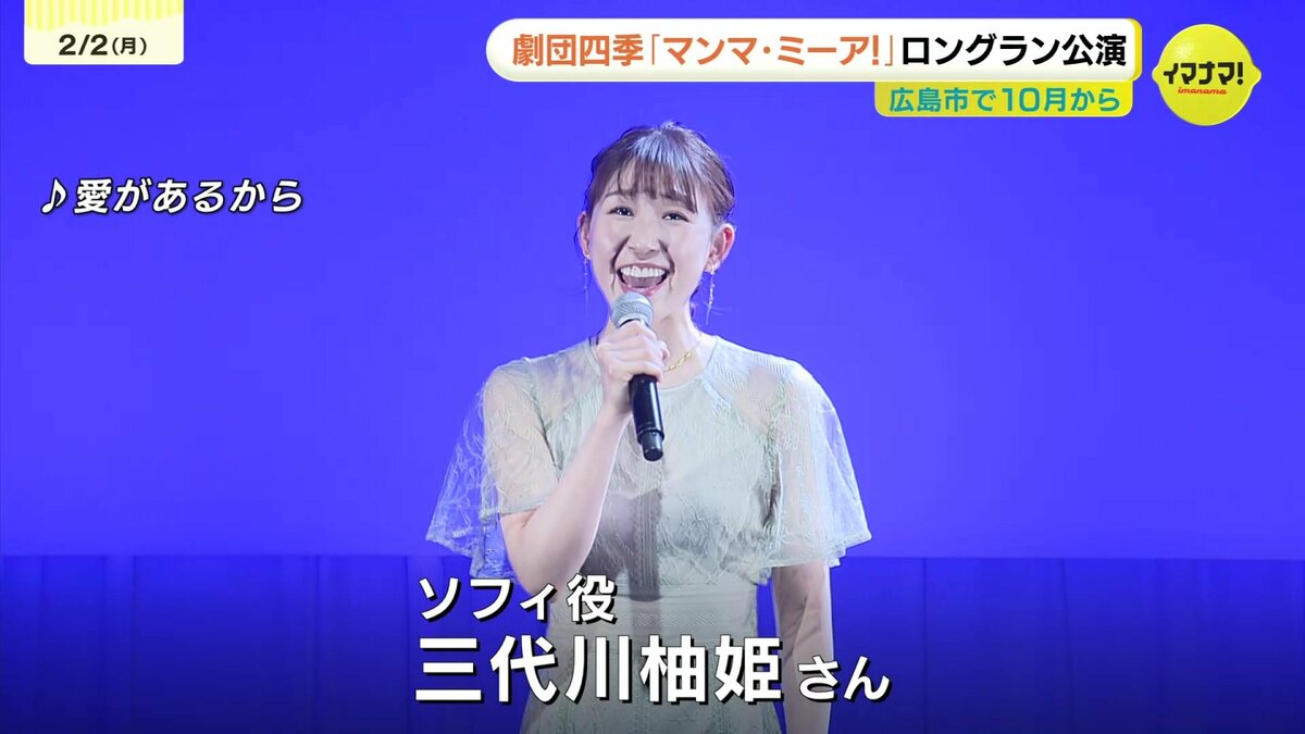 マンマ・ミーアの広島ロングラン公演は16年ぶりとなります。製作発表会には出演候補キャストのほか横田知事や広島市の松井市長などが登壇。主演が予定されるキャストがテーマ曲を披露しました。