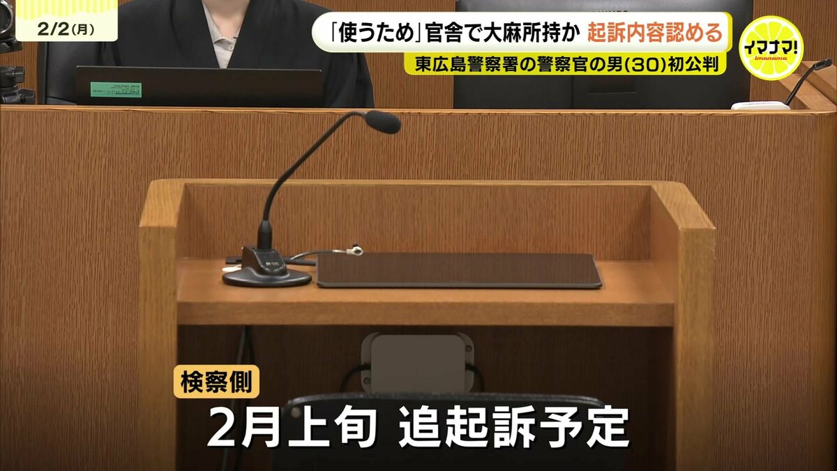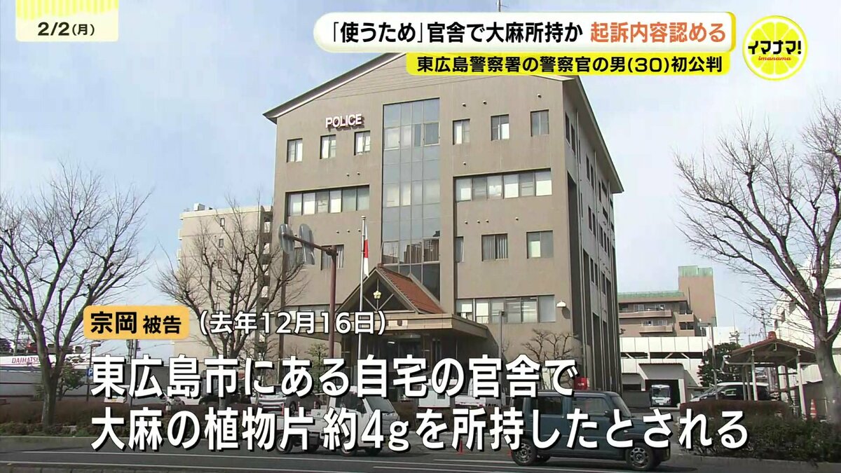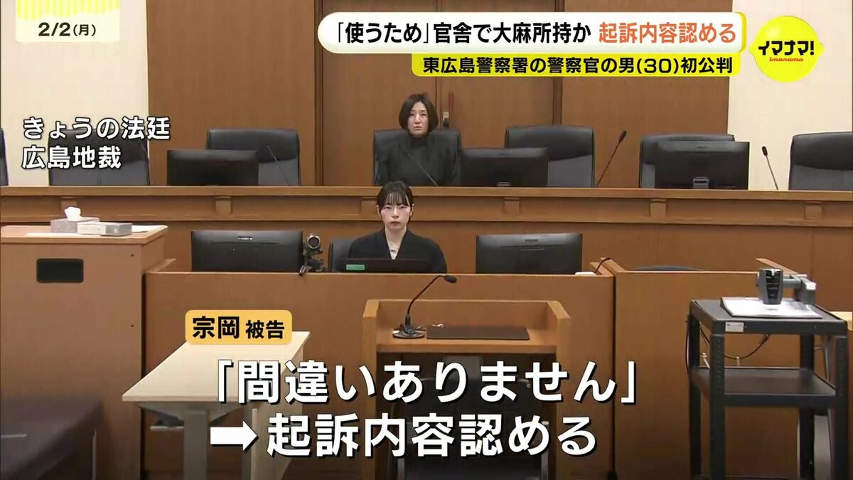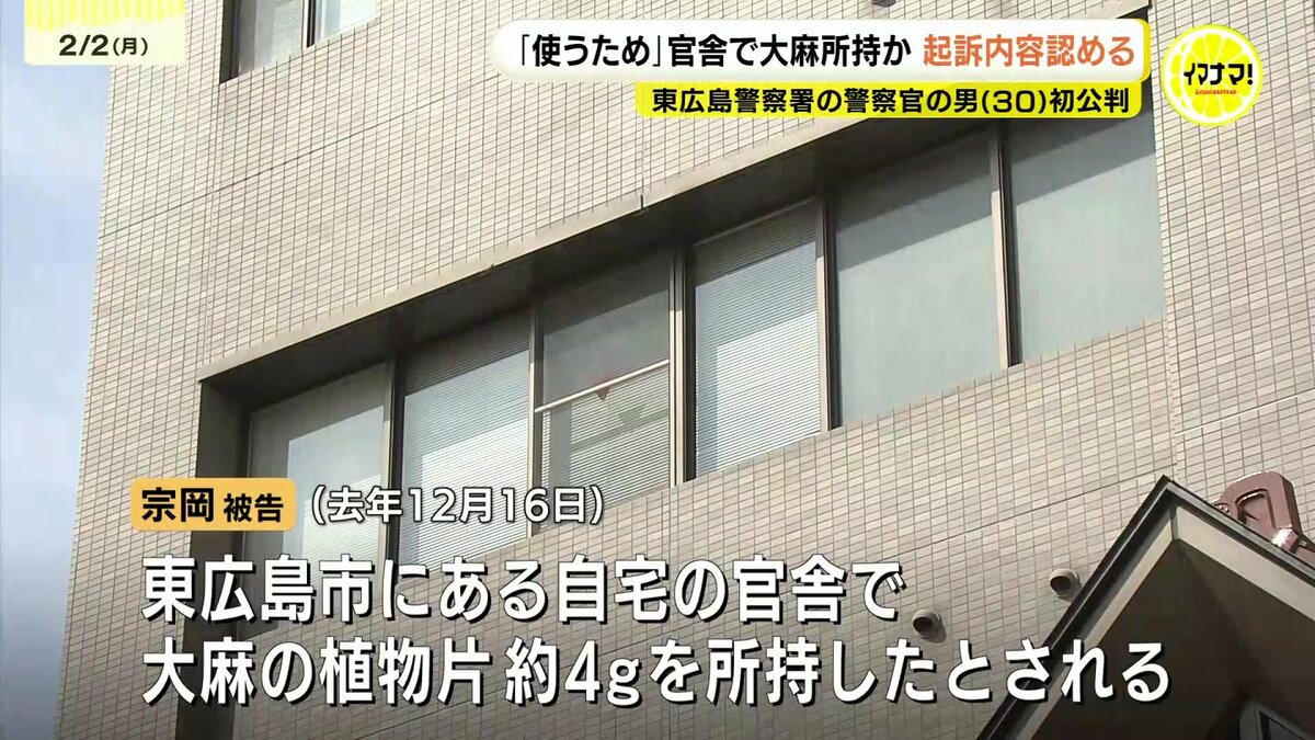 自宅の官舎で大麻を所持したとして、麻薬取締法違反の罪で起訴された広島県警東広島警察署刑事第二課の巡査・宗岡拓己被告(30)の初公判が2日、広島地裁で開かれ、宗岡被告は起訴内容を認めました。