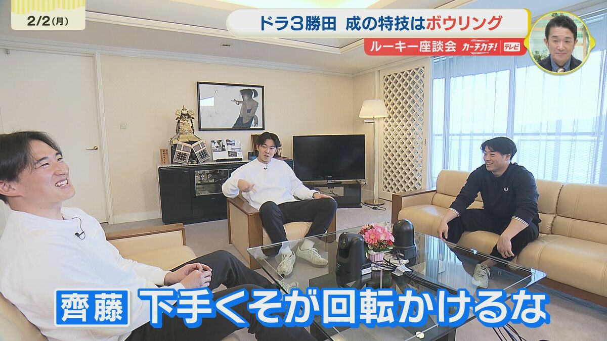 今回、座談会に参加する3人は走攻守そろった期待のドラフト1位平川蓮(ひらかわ・れん)に、最速150km越えの本格右腕ドラフト2位・斉藤汰直(さいとう・たいち)。そして、身長163cmの小さな巨人ドラフト3位・勝田成(かつだ・なる)の一軍キャンプに臨んでいるルーキーズ!