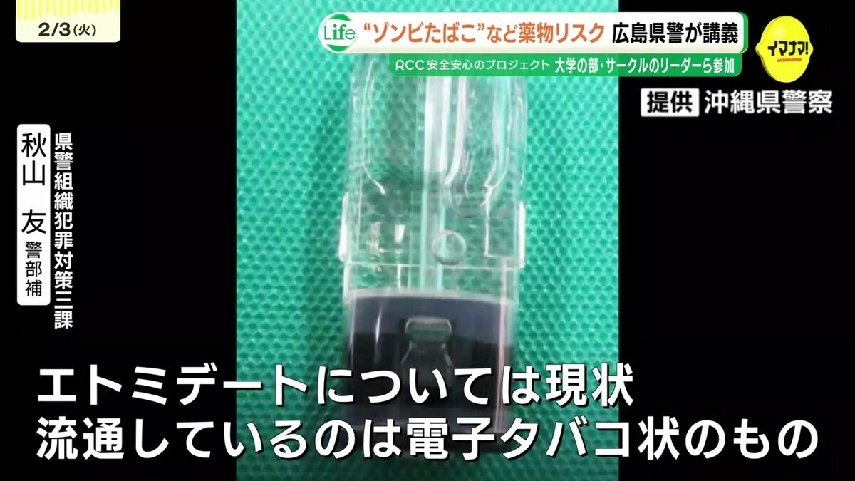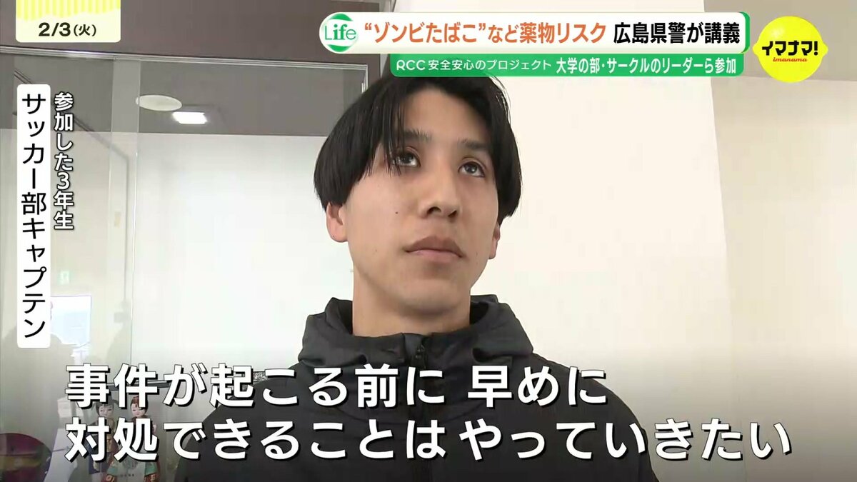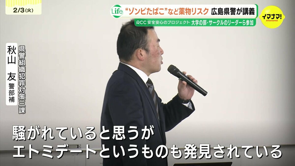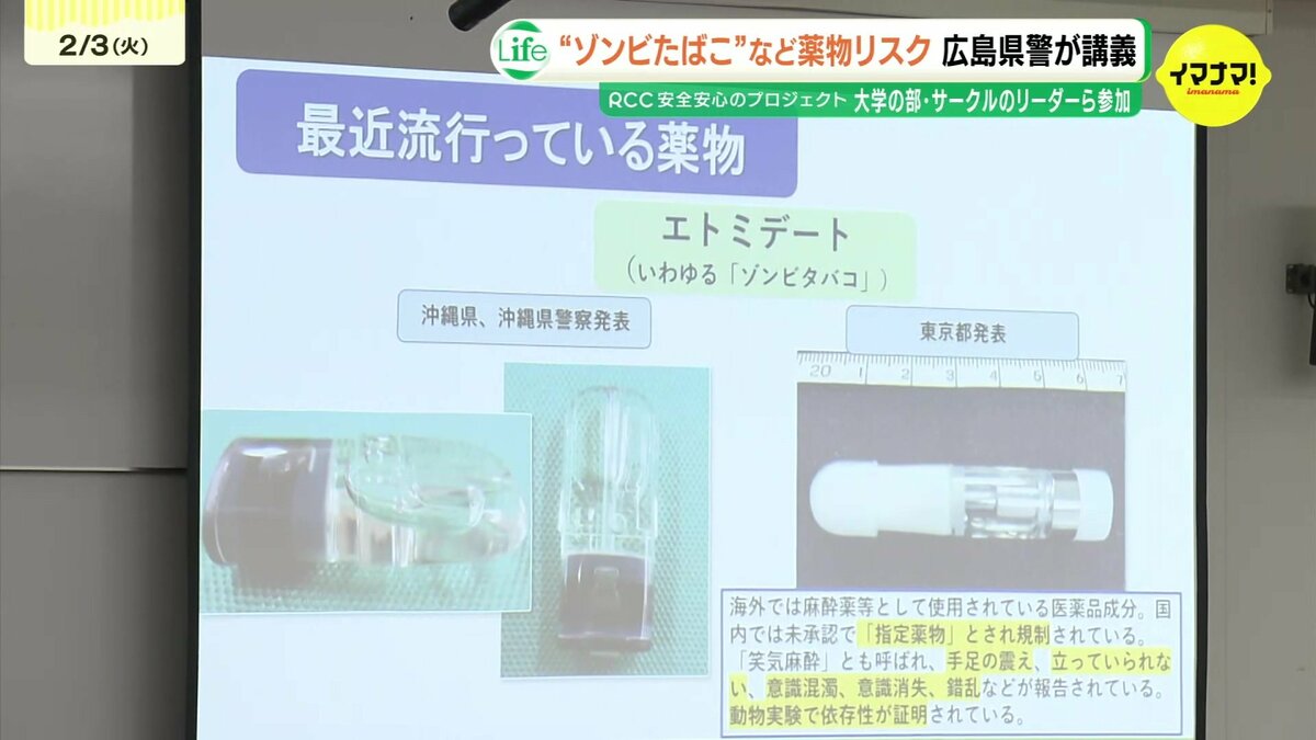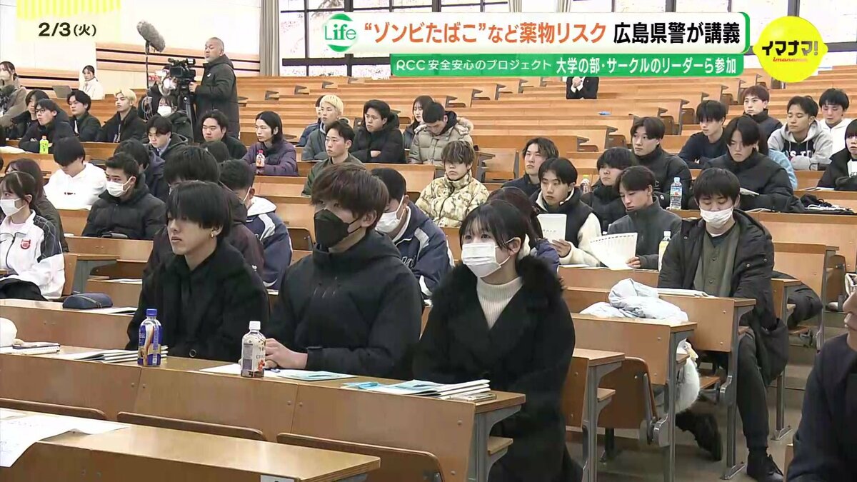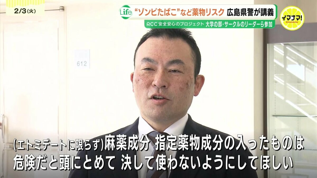 カープの羽月容疑者がいわゆる「ゾンビたばこ」を使用した疑いで逮捕されましたが、若者への薬物まん延が懸念されています。薬物のリスクを知ってもらおうと広島県警の薬物事件の担当者が大学生に講義しました。