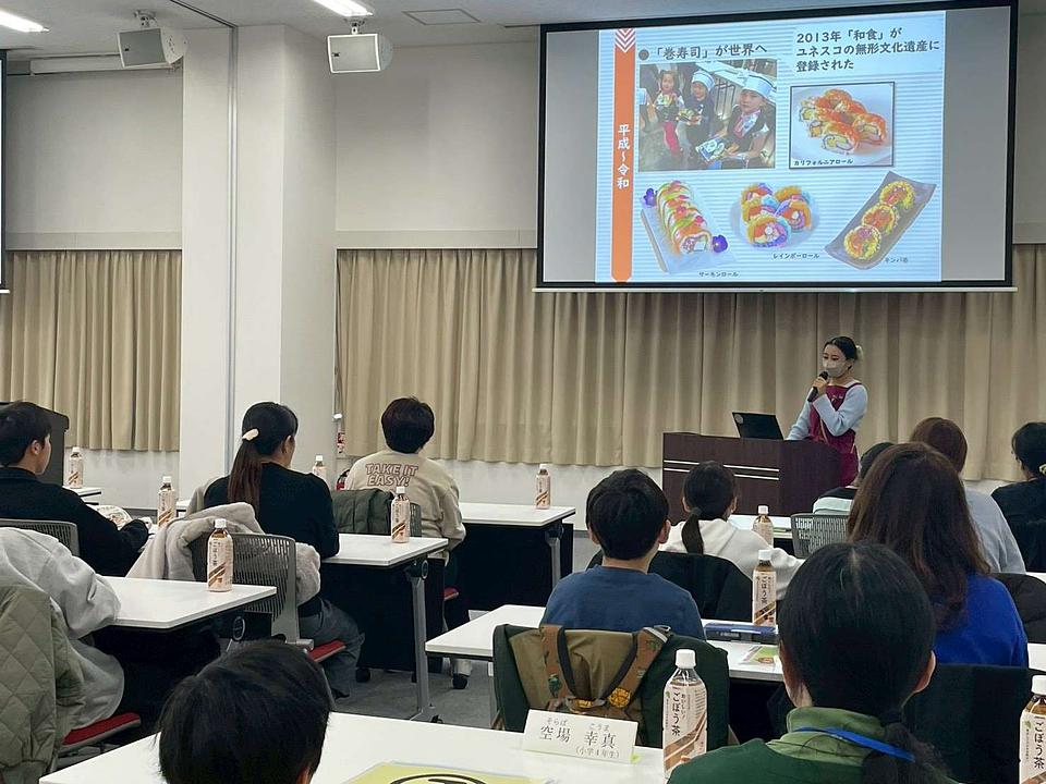 クイズを交えながら、楽しく巻き寿司の歴史を学びました📝