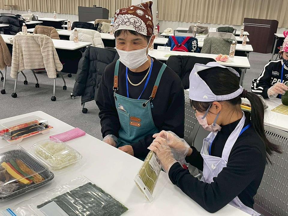 親子で力を合わせて、基本の巻き寿司とオリジナル巻き寿司の計2本が完成!