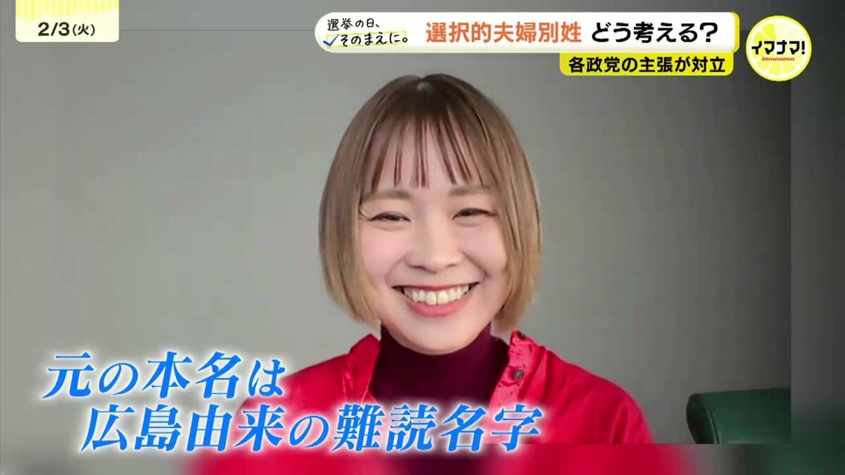 「私は結婚してだんなさんの名字になっても特に疑問には思ったことないですけど、違うのが使いたいって人がいるんだったら、それを選べるんだったらいいかなって思います」