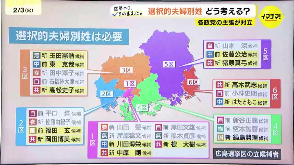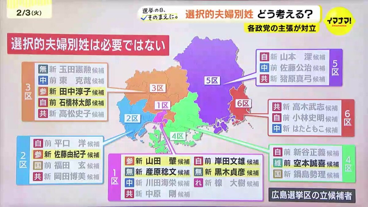 選択的夫婦別姓について広島選挙区の全候補者にアンケート調査したところ、このような答えでした。