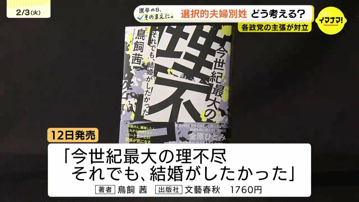 選択的夫婦別姓か、旧姓の通称使用の拡大か…今回の衆院選では、夫婦の姓をめぐり各政党の主張が分かれています。12日に発売されるこちらの書籍『今世紀最大の理不尽それでも、結婚がしたかった』では、選択的夫婦別姓について著者が問題提起をしています。街の人はこの議論をどう考えているのか、広島選挙区の候補者の意識と併せてお伝えします。
