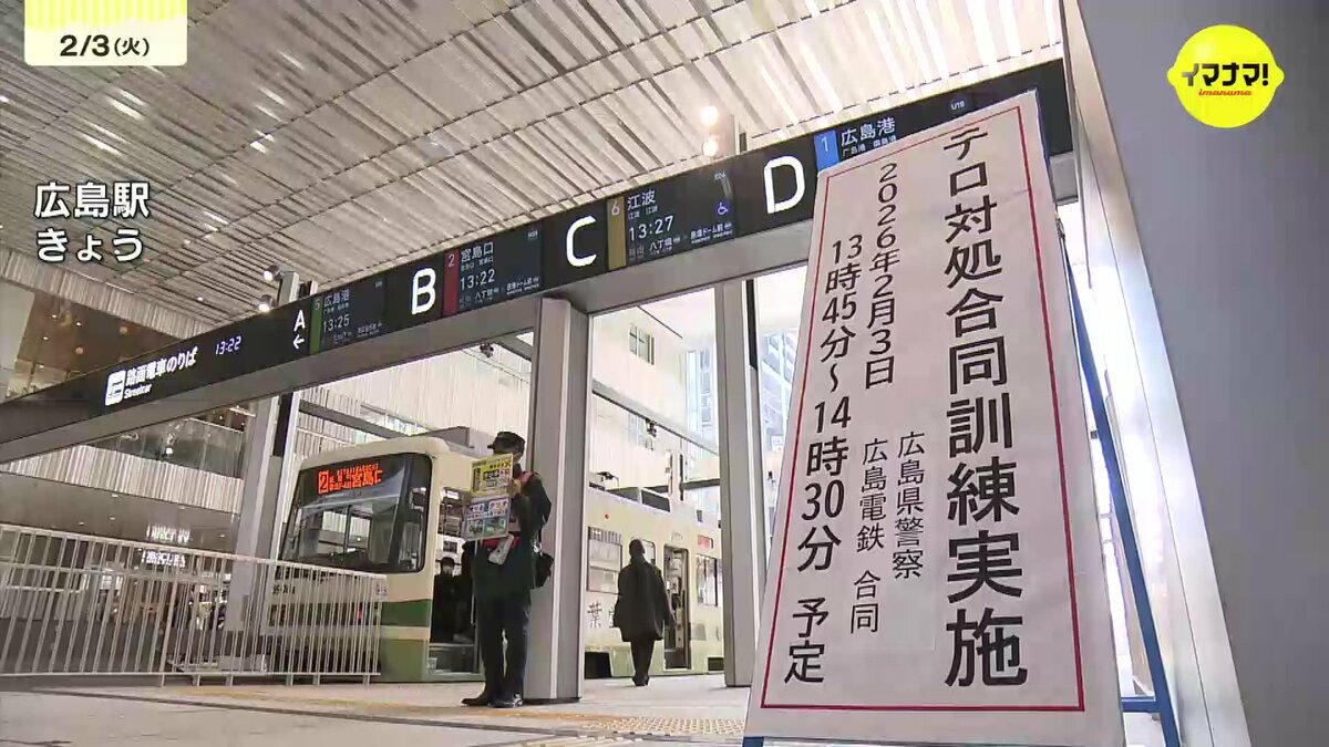 広島駅の新しくなった広島電鉄のホームで初めて、テロ事件への対処を想定した訓練が行われました。訓練は、実際の電車を使用して行われました。