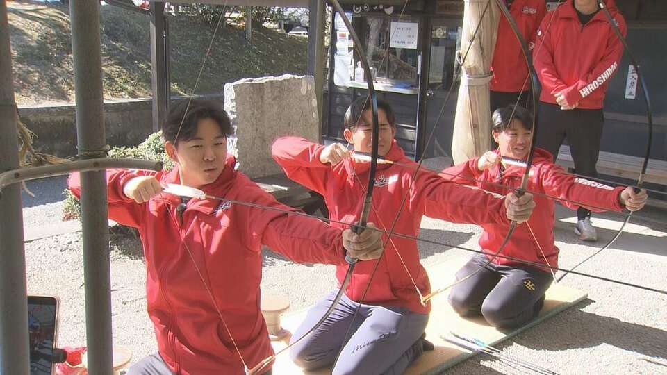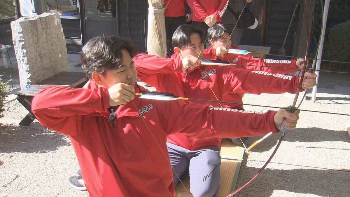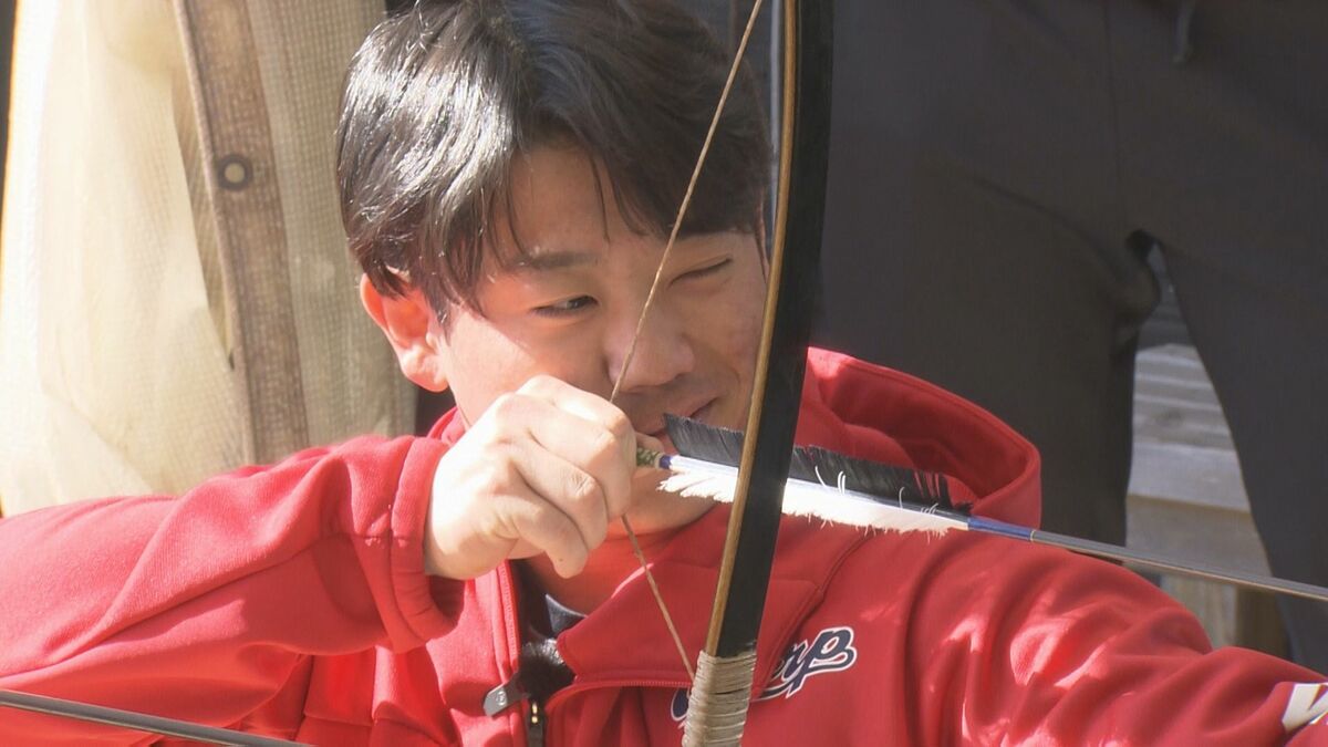 8年ぶりの優勝を祈願して、的の中心に記された『Vサイン』を狙います。