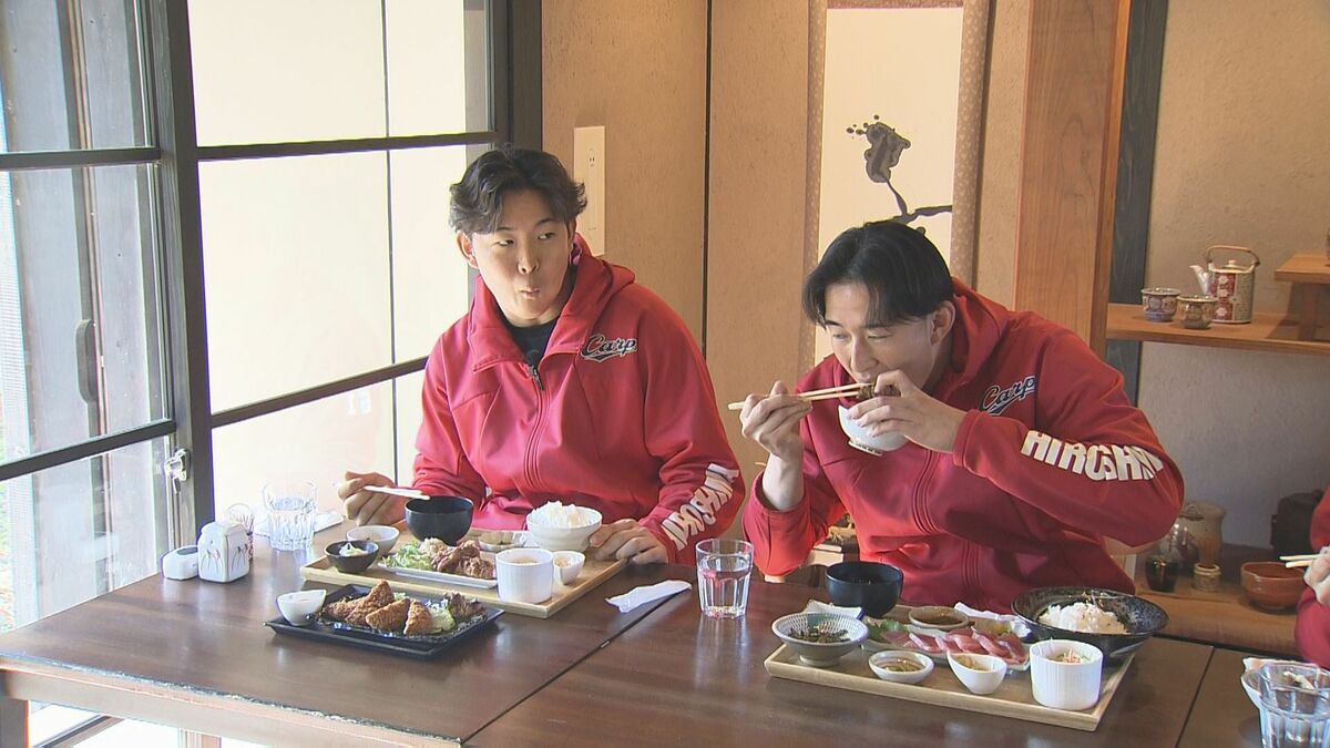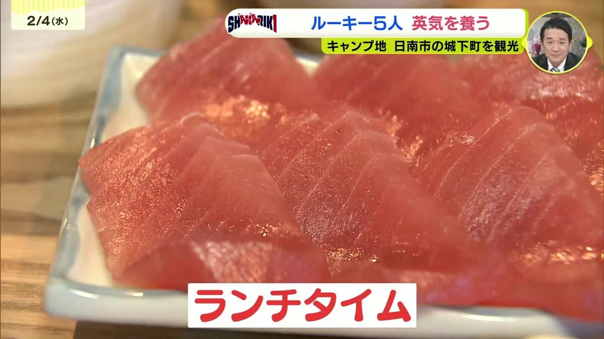 キャンプの疲れを癒やすため、5人はマグロ料理やチキン南蛮に舌鼓を打ちました。