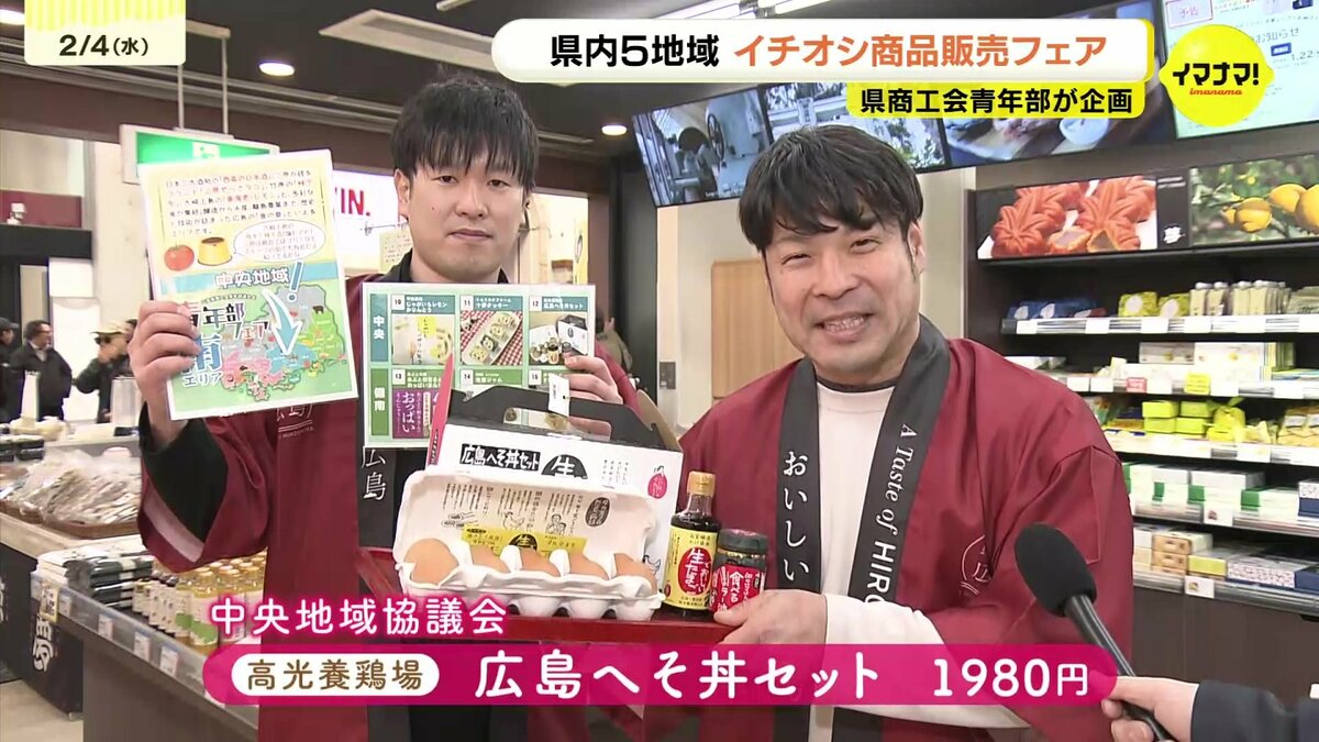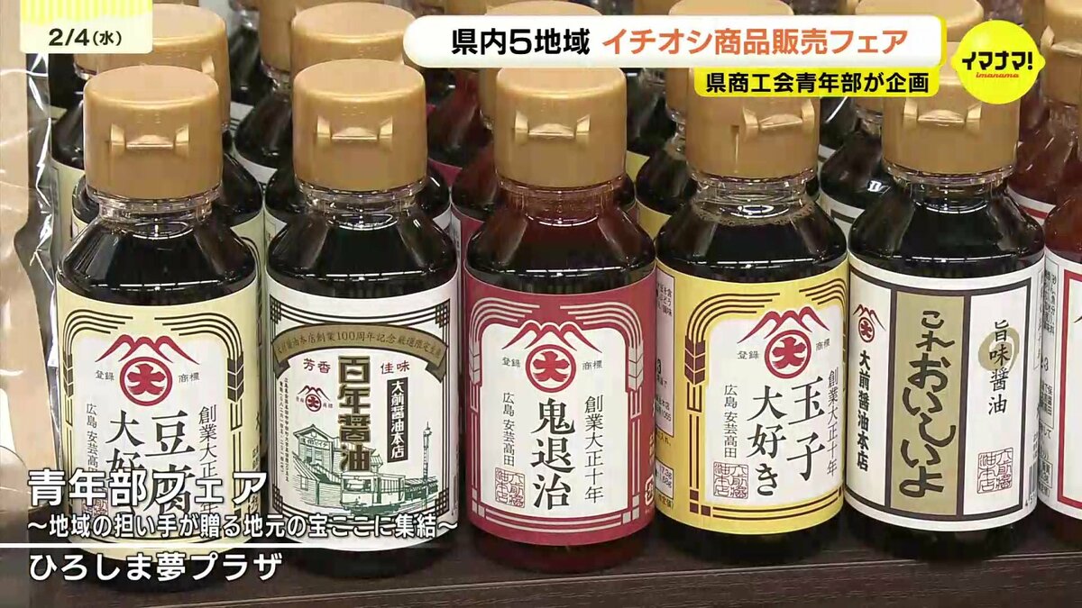 県内の特産品を扱うひろしま夢ぷらざで、ある対決が始まりました。県内の商工会青年部が集めたイチオシ商品の数々が並んでいます。