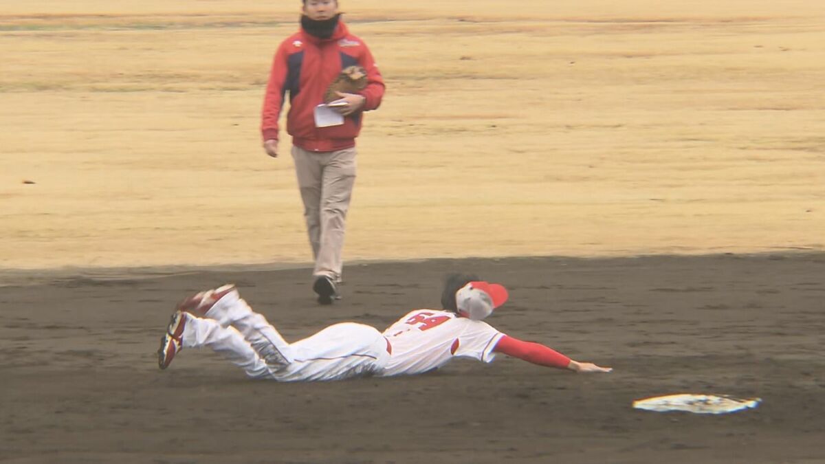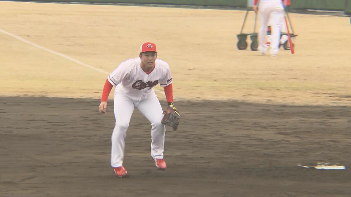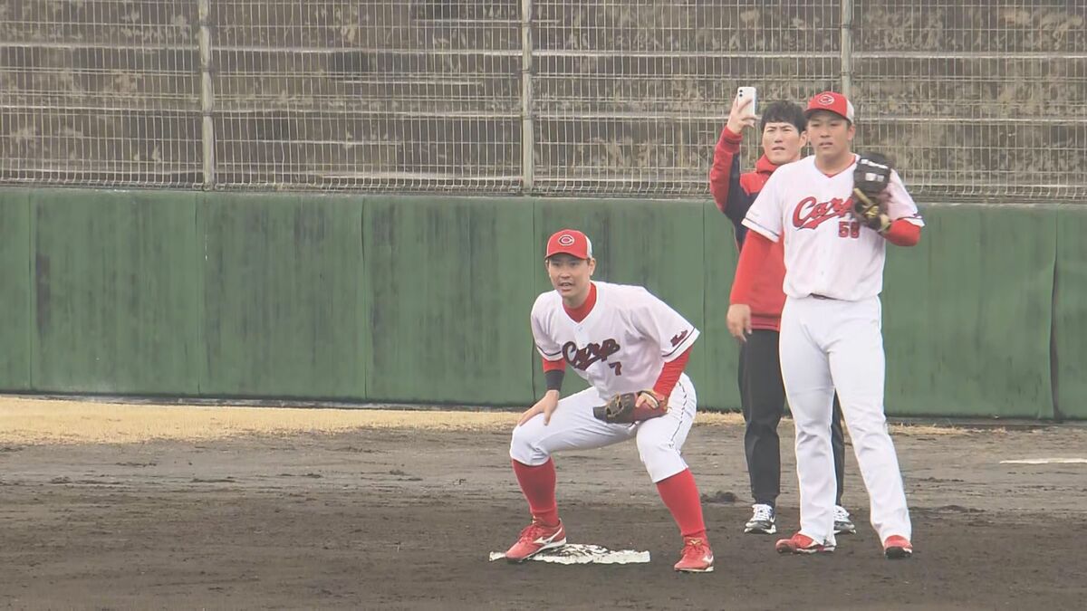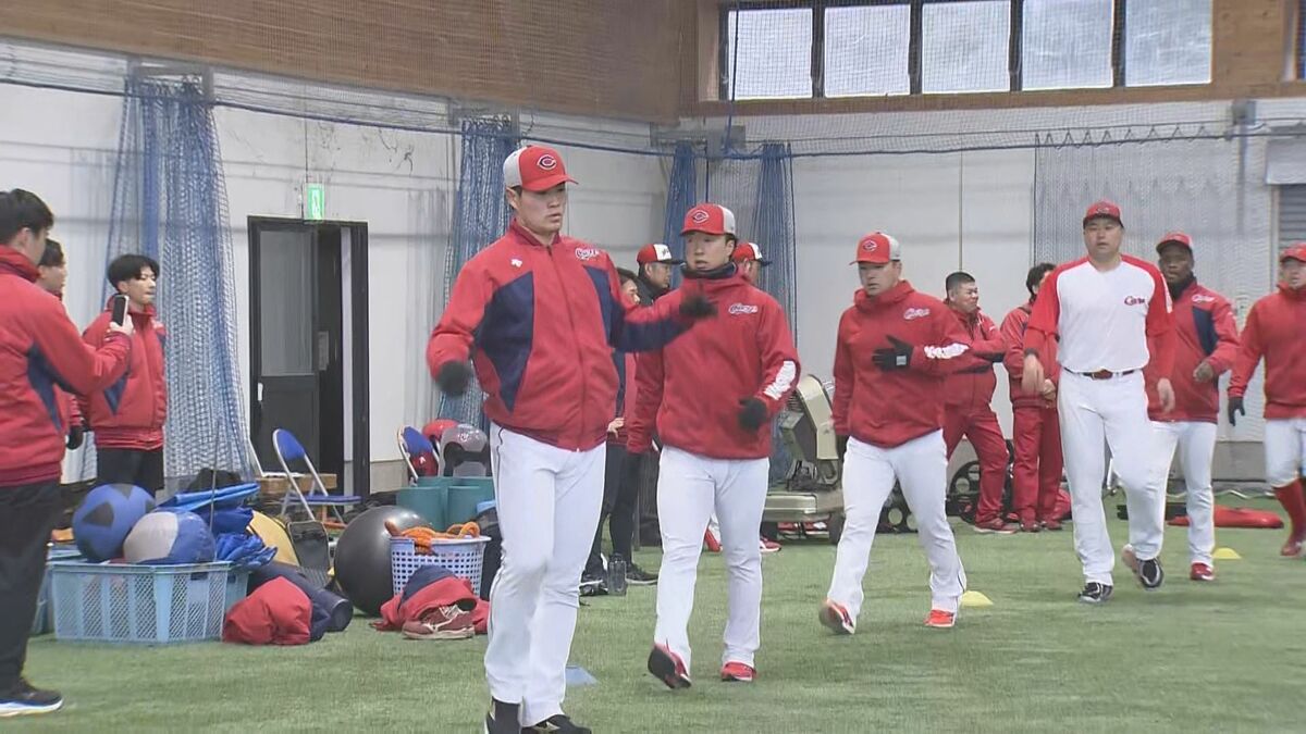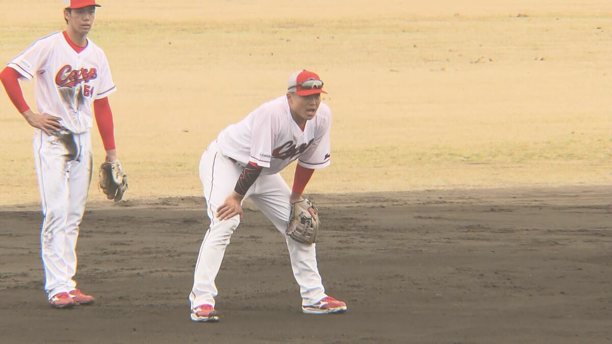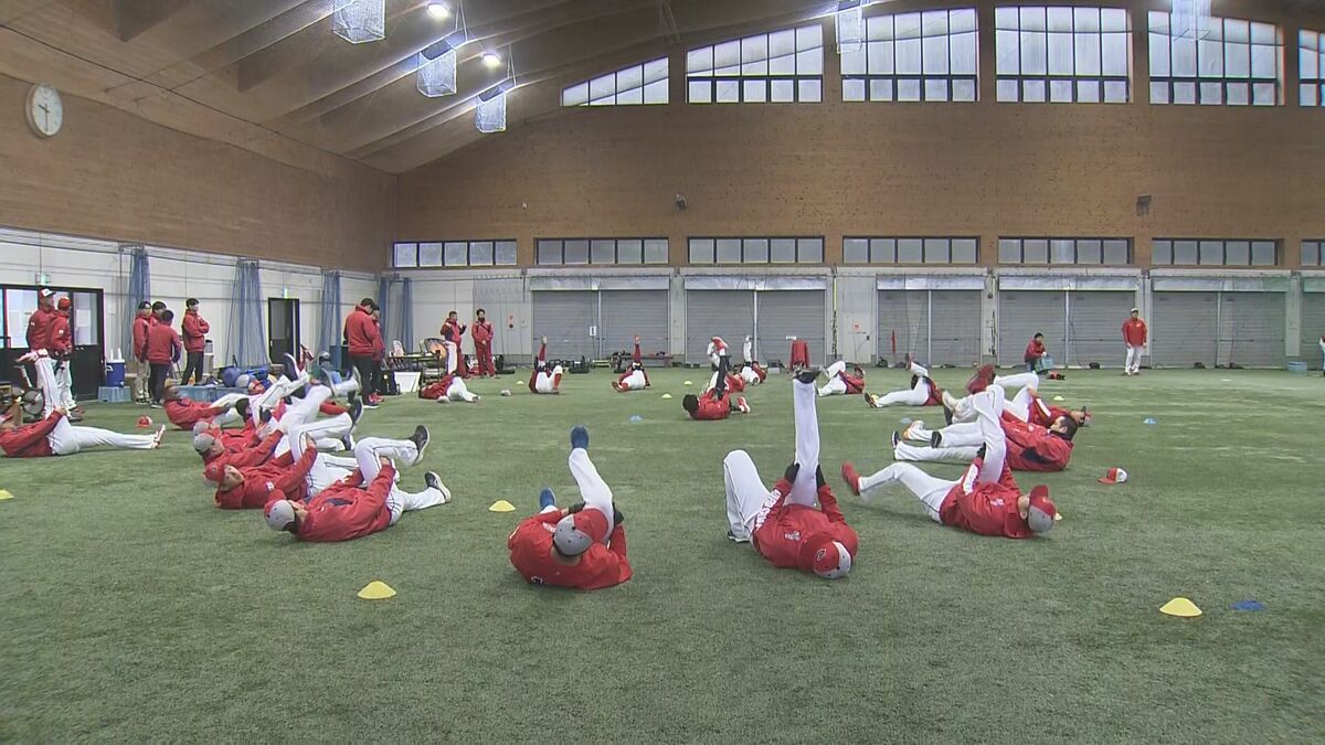 日南市の東光寺球場に続々と選手が姿を見せます。外野のレギュラー争いをする野間峻祥や末包昇大、大盛穂も2軍キャンプスタートです。
