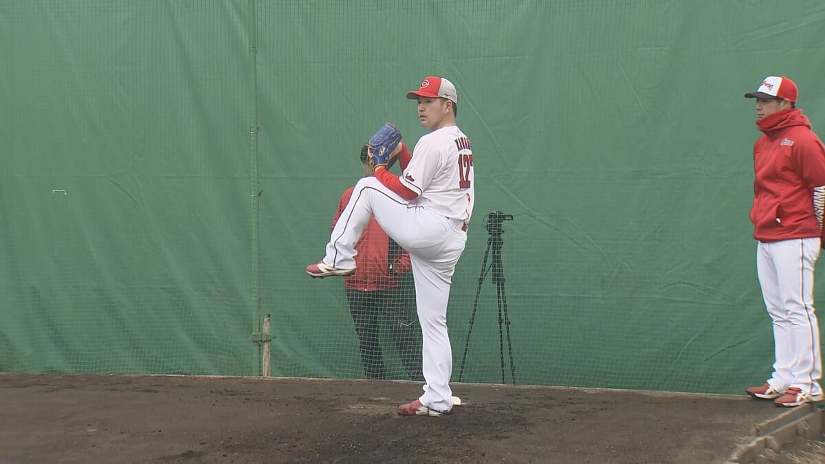 昼のバッティング練習ではWBCのサポートメンバーに選ばれた佐藤柳之助が登板しました。