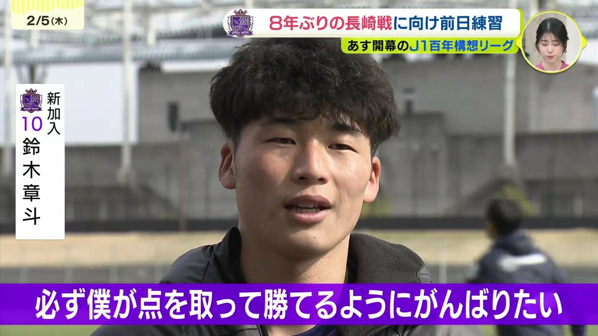 今シーズンの大きな注目は、攻撃陣の補強です。昨シーズン課題となった得点力不足を解消すべく、期待を背負って加入したのが鈴木章斗選手。鈴木選手は、「広島のサポーターの熱さは知っている。一緒に戦えるということで、必ず僕が点を取って、勝てるように頑張りたい」と、開幕戦でのゴール宣言を行いました。