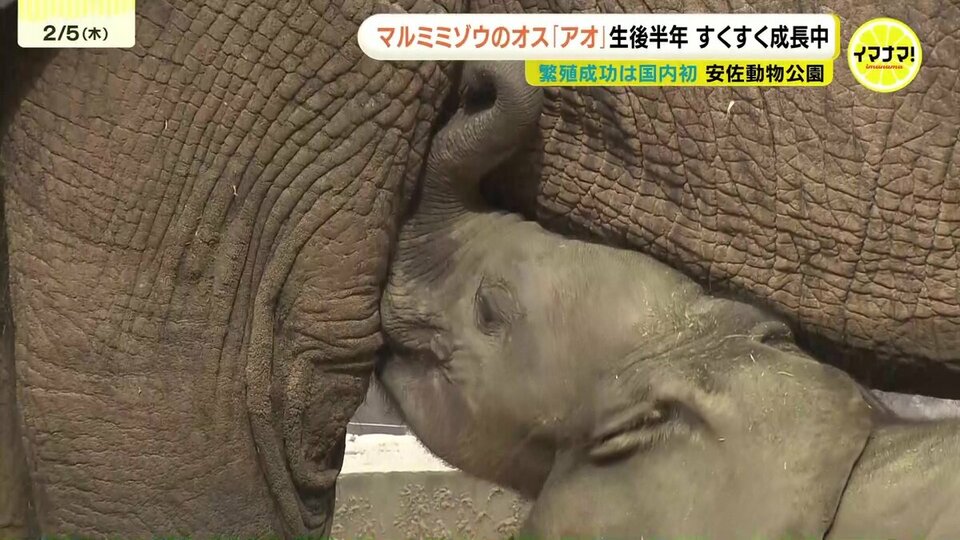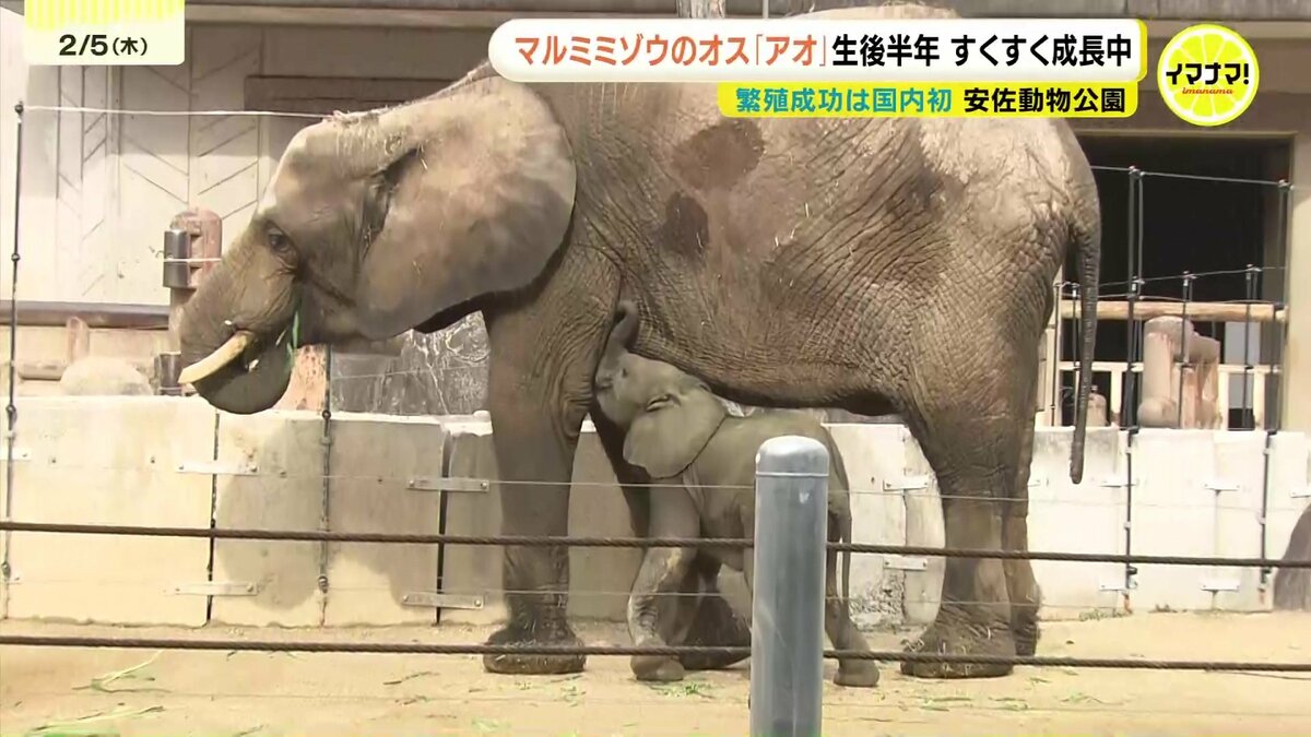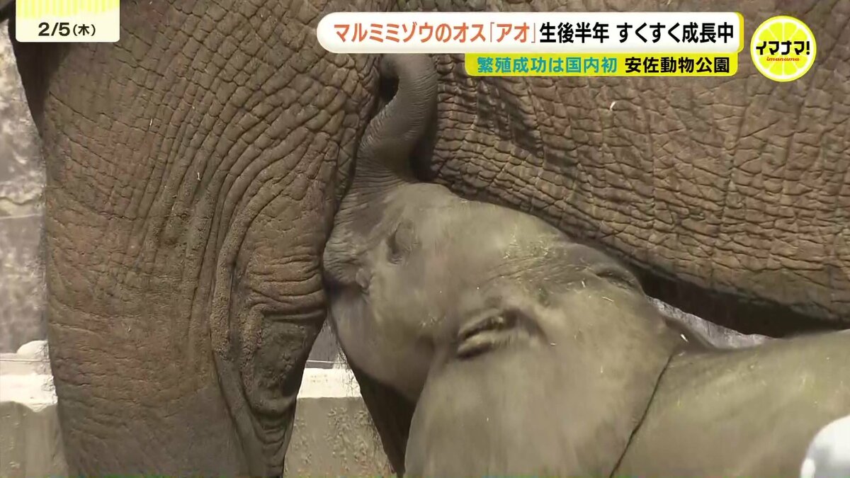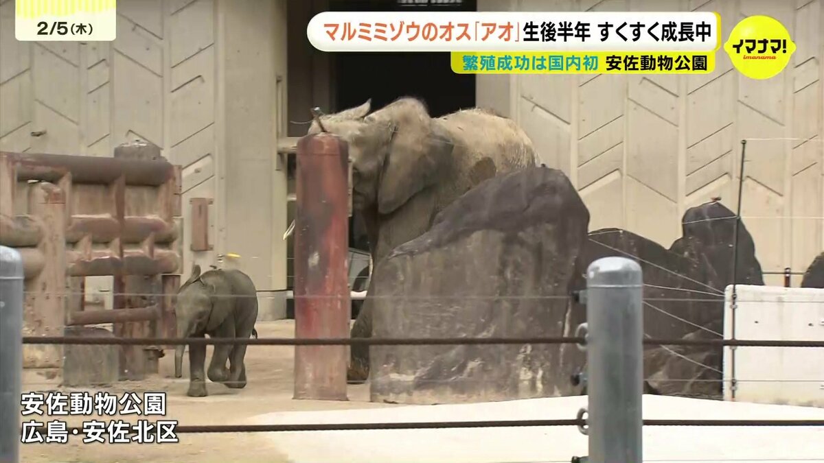 広島市の安佐動物公園で誕生したマルミミゾウの赤ちゃんが5日、生後半年を迎えました。