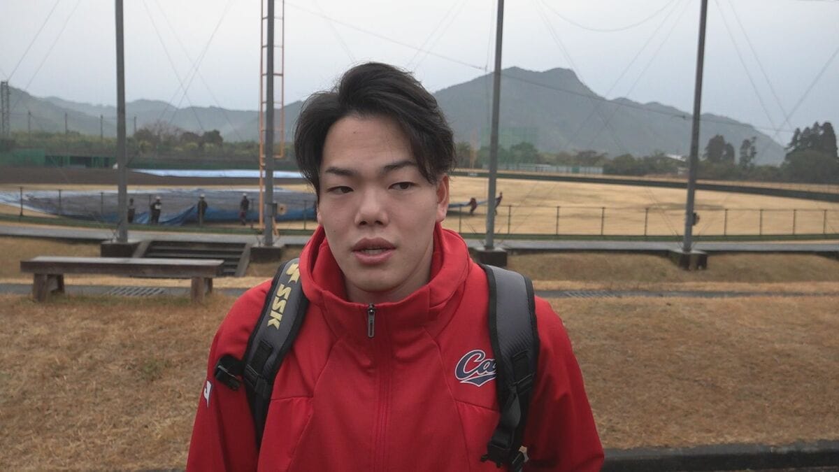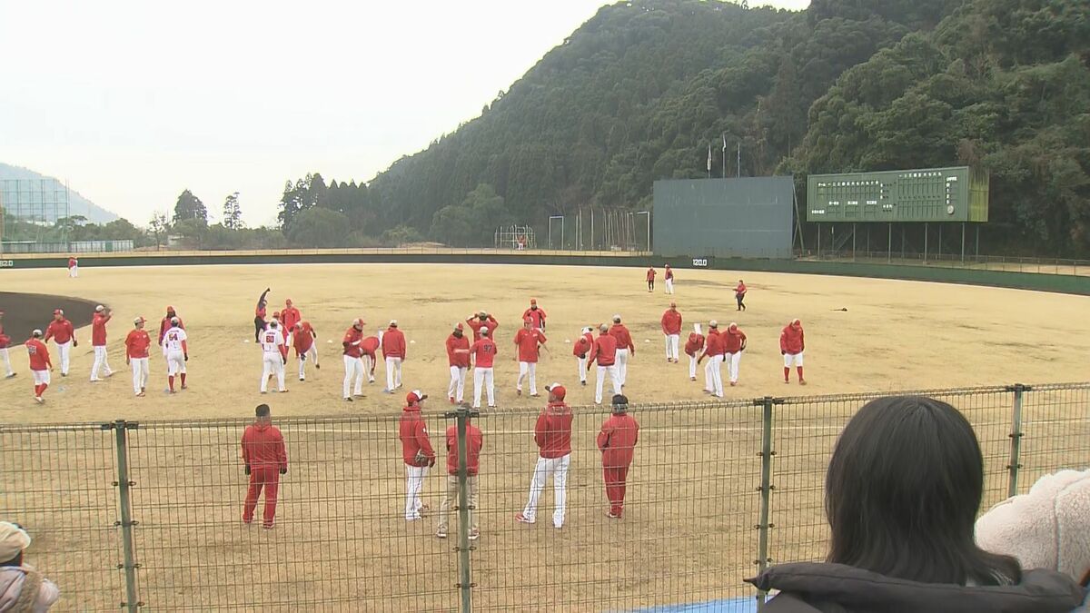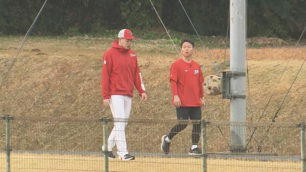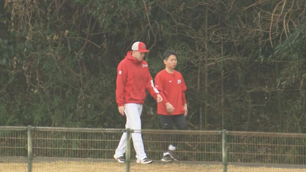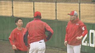 2軍が練習する東光寺球場に左ひじの靱帯損傷で2月2日にキャンプから離脱した滝田一希が姿を見せました。