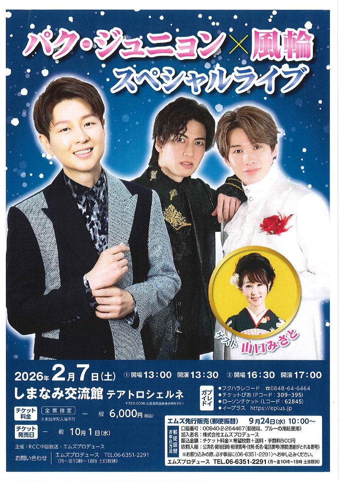 山本譲二が認めた歌唱力の持ち主、パク・ジュニョンと期待の2人組、風輪によるジョイントコンサート!会場にて当日券販売予定!!