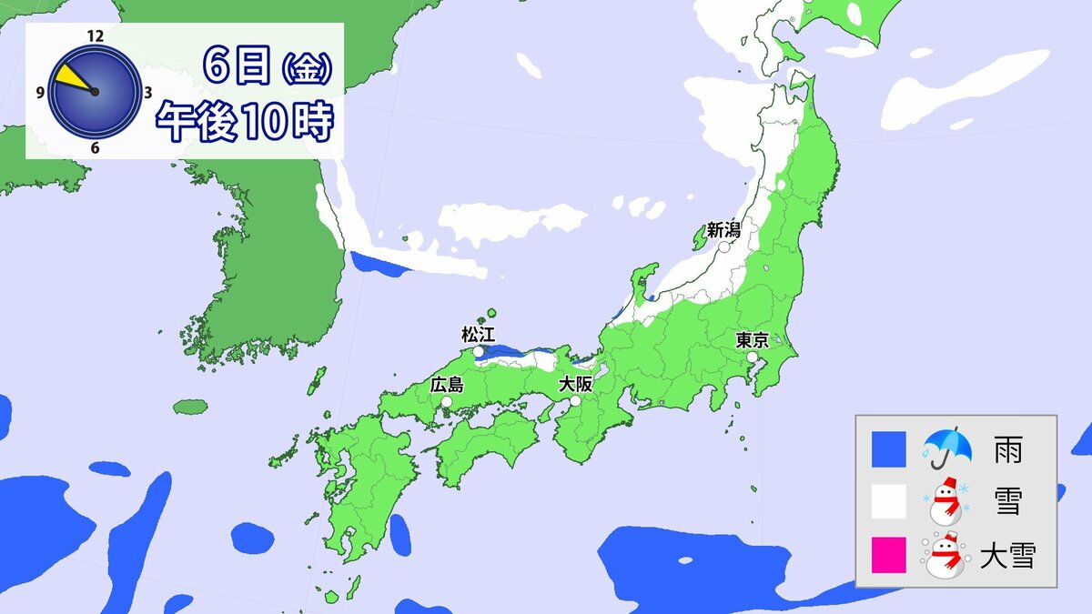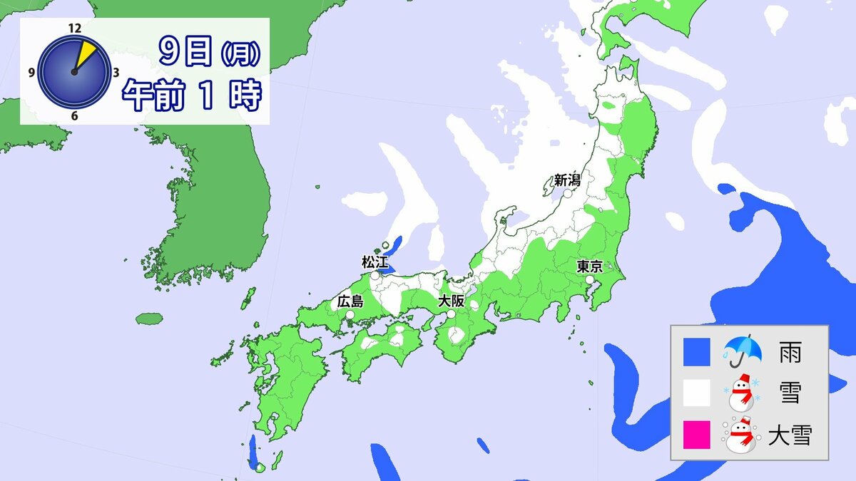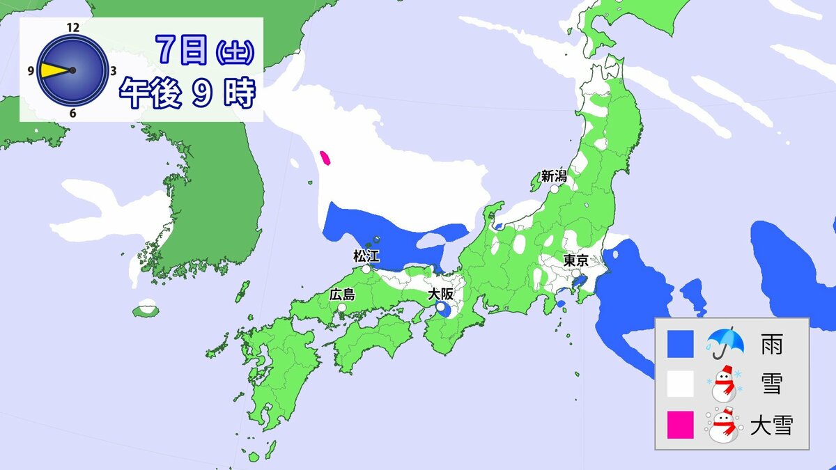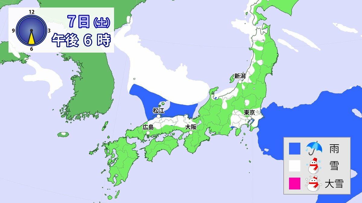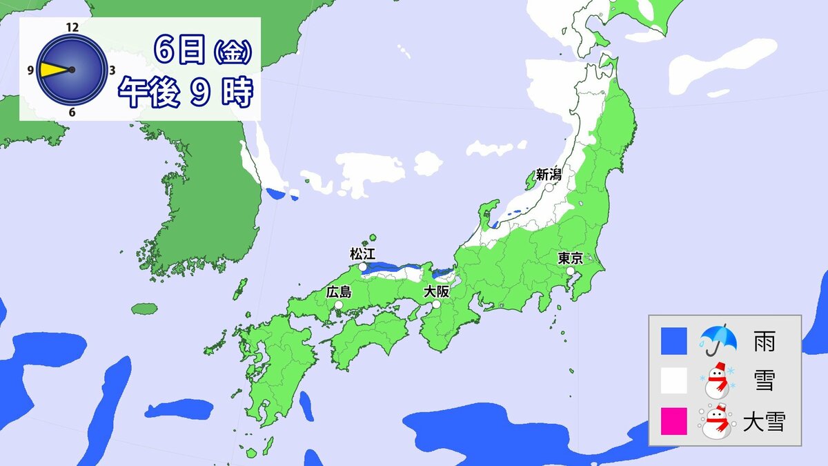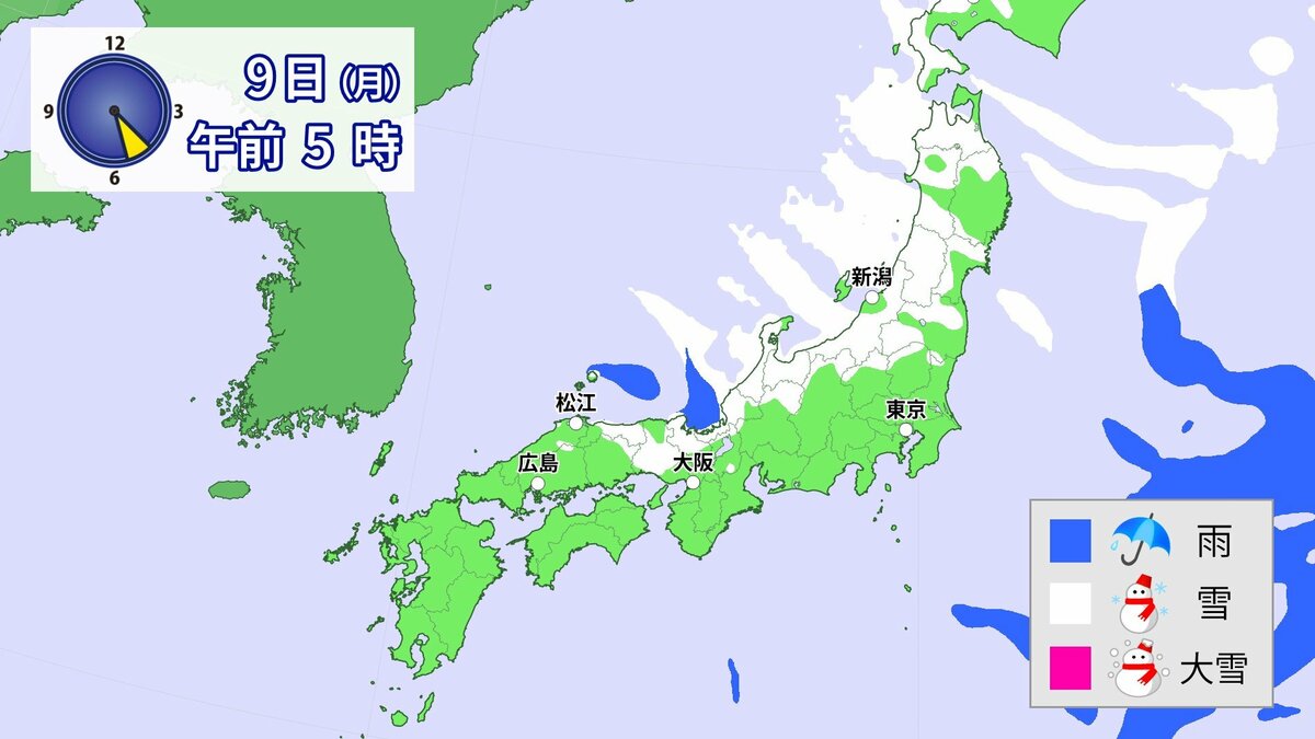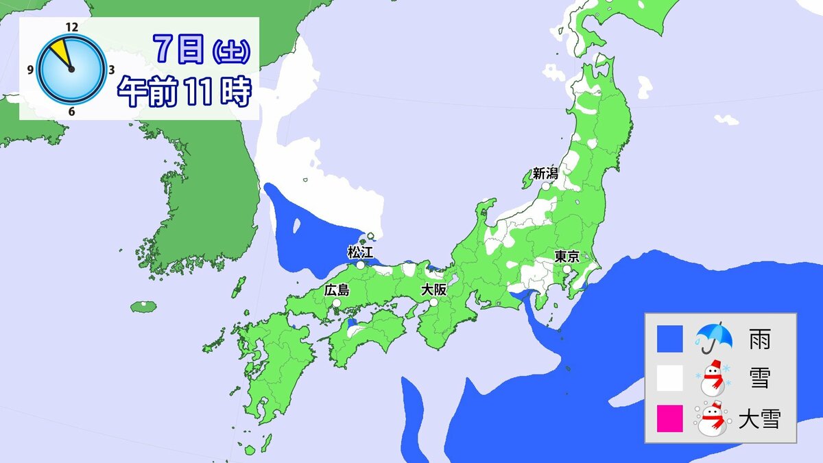 中国地方では、8日は短時間に降雪が強まり、平地も含めた広い範囲で警報級の大雪となる見込みです。