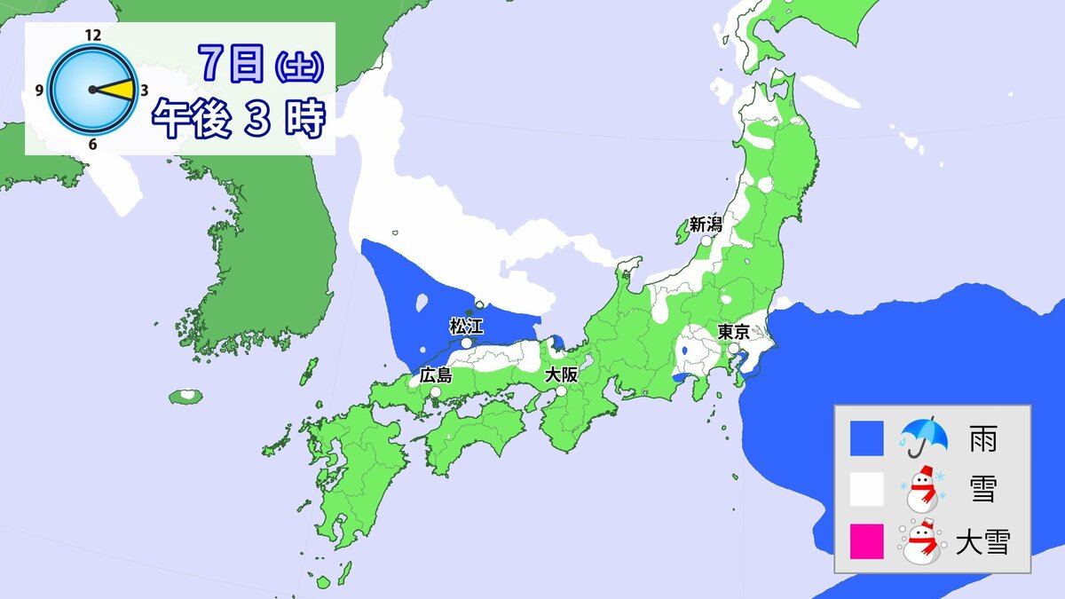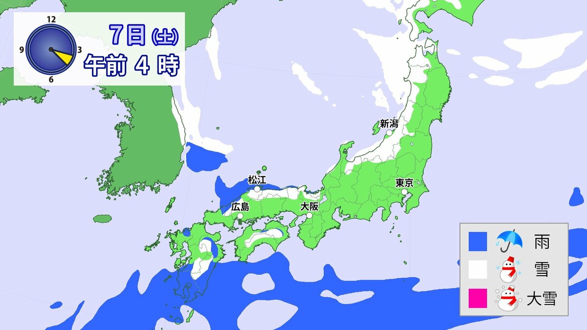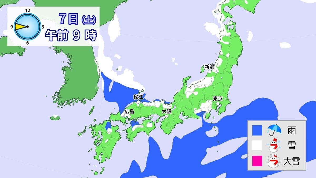 北日本から西日本では、日本海側を中心に9日頃にかけて降雪が続き、山沿いや山地だけではなく、平地でも大雪となる所があるでしょう。特に8日は、上空に一層強い寒気が流れ込み、降雪が強まるおそれがあります。また、普段雪の少ない太平洋側でも大雪となる所がある見込みです。