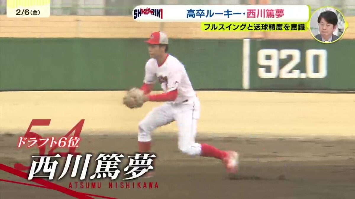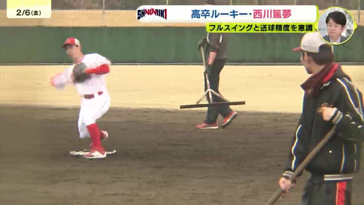 キャンプ2日目となった2軍の東光寺球場では、はつらつとトレーニングする高卒ルーキーでドラフト6位の西川篤夢(あつむ)の姿がありました。
