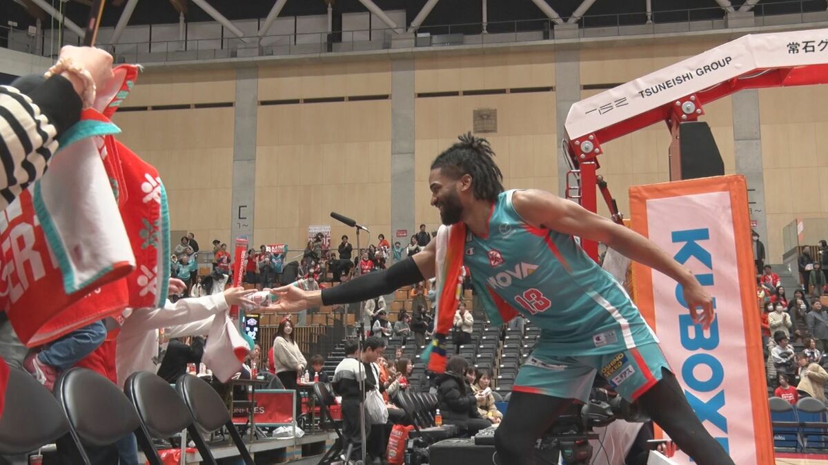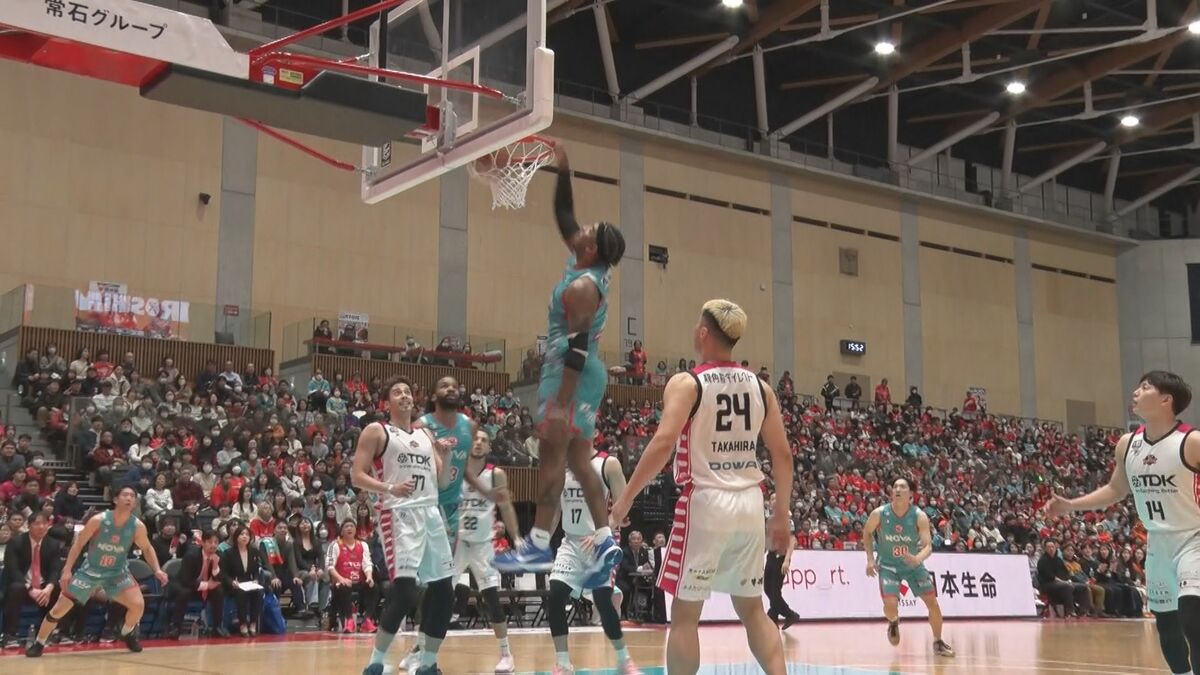 一進一退の攻防が続く中全員が体を張ったディフェンスから流れを作ると、最後はチーム最多21得点を挙げたスミス選手のダンクなどの攻撃で突き放しました。