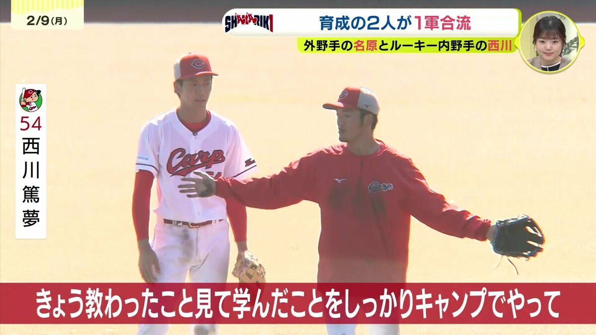 2軍から唯一の高卒ルーキー西川篤夢と育成再契約で今シーズンに臨む名原典彦が合流しました。