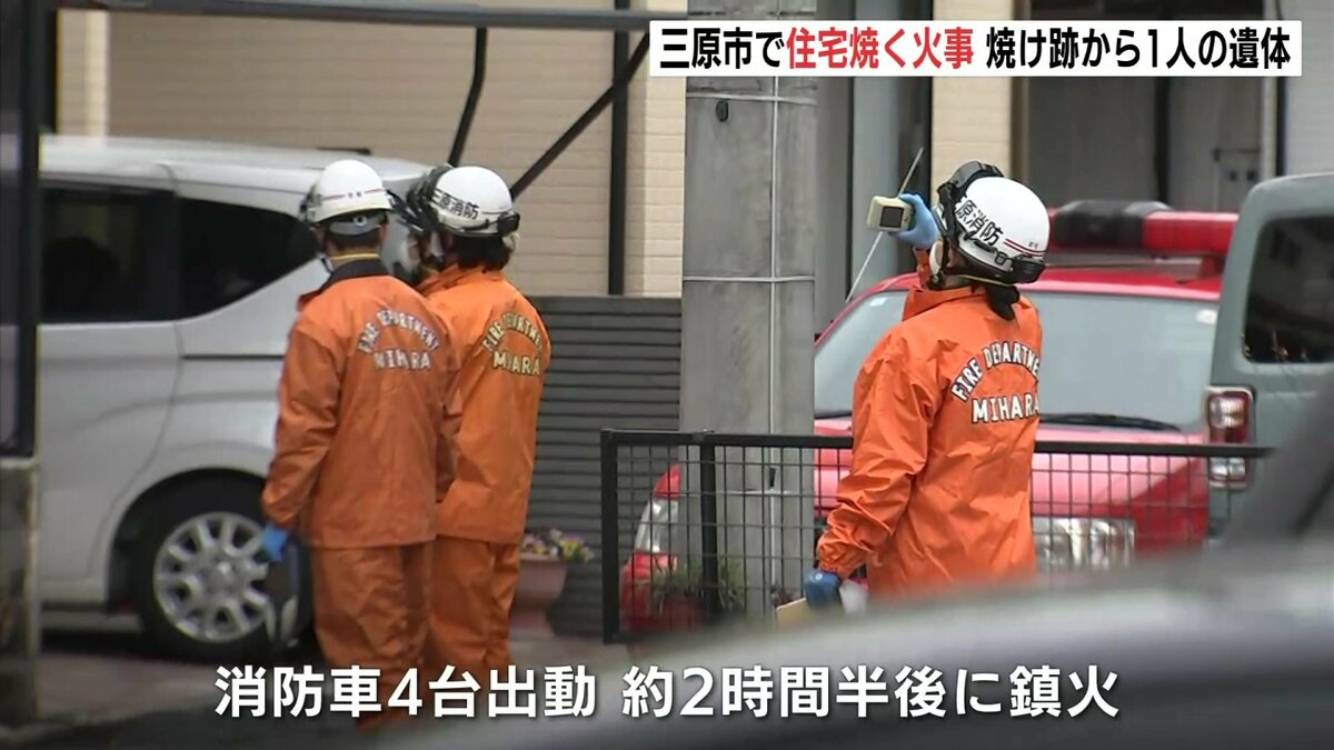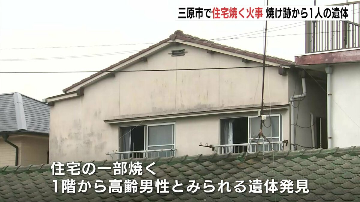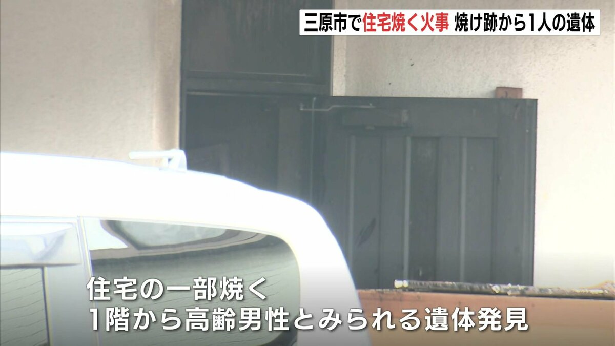 消防車4台が出動し、火は約2時間半後に消し止められました。この火事で、この住宅の一部を焼き、1階部分からは、高齢男性とみられる1人の遺体が見つかりました。