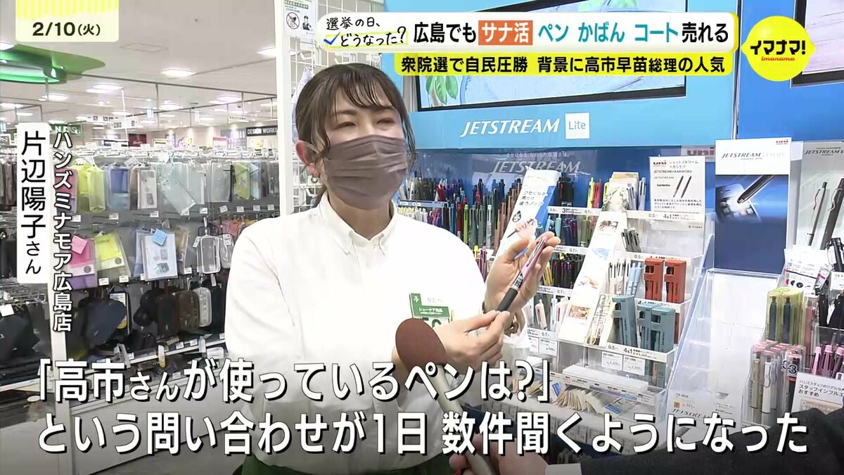「高市総理就任後から問い合わせが多くてテレビで見られたりSNSで見られて、高市さんが使っているペンはどちらですかという問い合わせが一日に数件聞くようになりました」