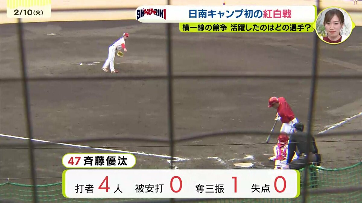 「今年結果を出さないと終わりだと思ってオフも取り組んできた。」と話した斉藤。「安定して真っすぐを投げることを心がけてきた。形にはなってきたかなと思う。」ときょうのピッチングを振り返りました。